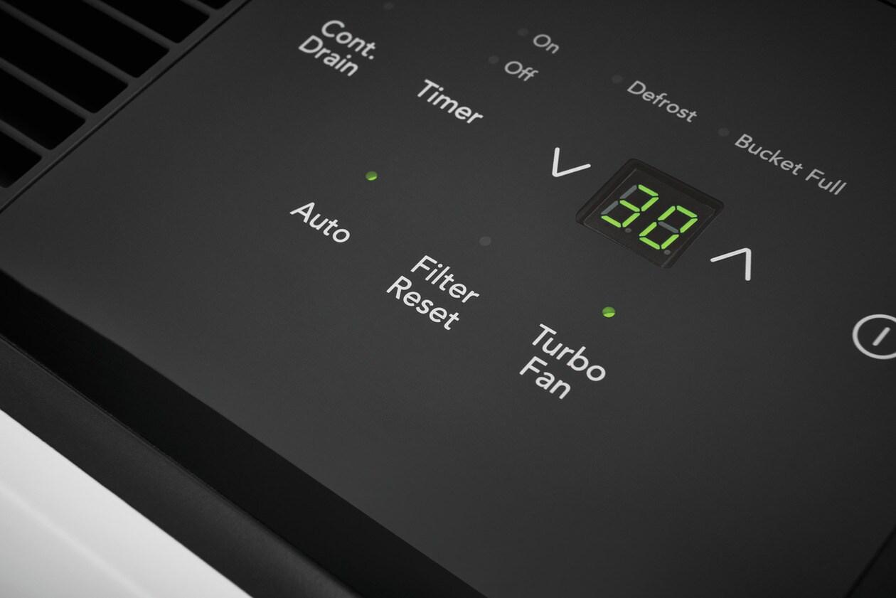 The Frigidaire 60 Pint Dehumidifier captures dust and helps manage your room's humidity levels with an Easy-to-Clean Washable Filter and Custom Humidity Control providing a cleaner, more comfortable home environment. The front loading bucket with carrying handle and splash guard makes cleaning hassle-free.