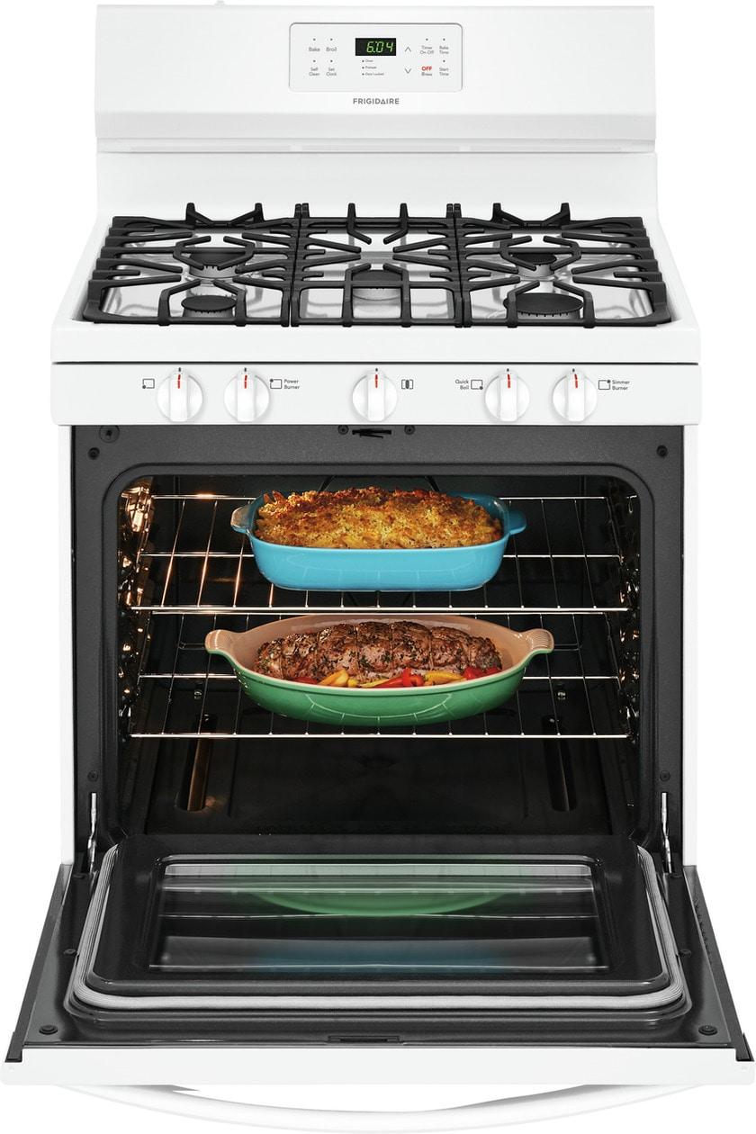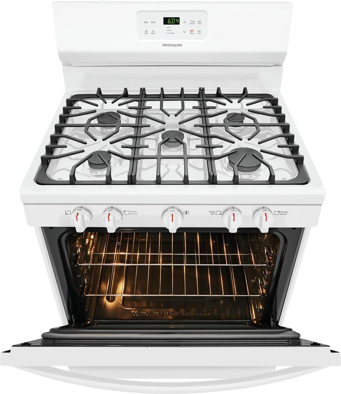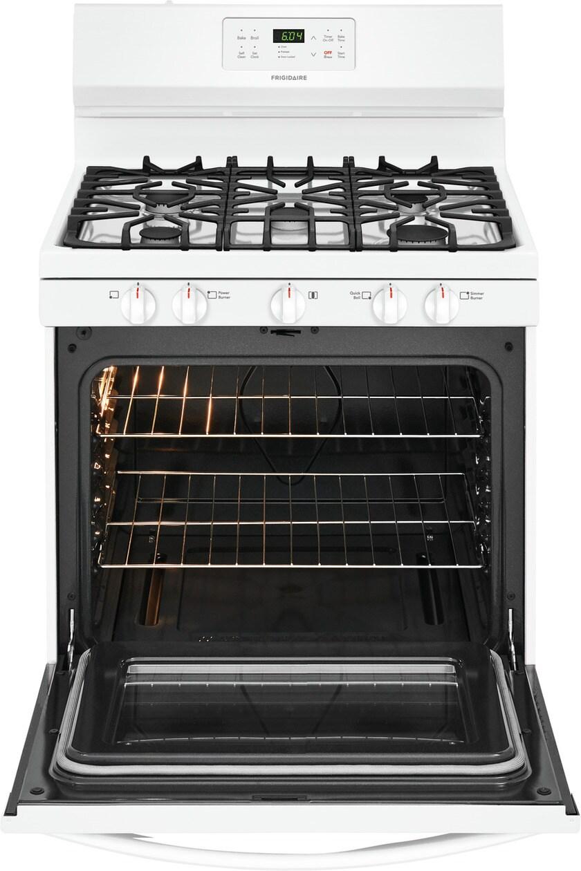 The Frigidaire 30" Gas Range with Quick Boil allows you to experience faster boil times with the 17,000 BTU Quick Boil burner. Cleanup is made easy with Delay Clean and One-Touch Self Clean options. Plus, the Store-More® Storage Drawer offers extra space to store cookware.