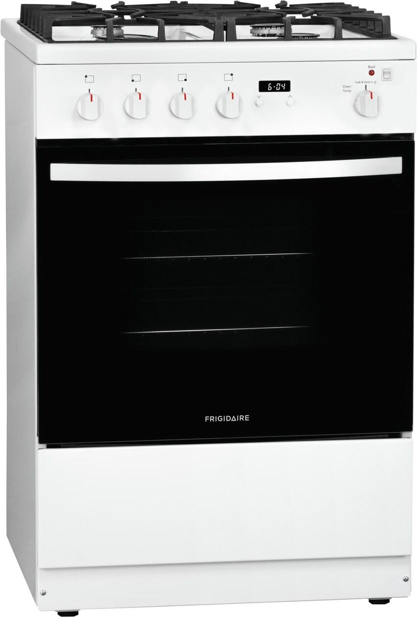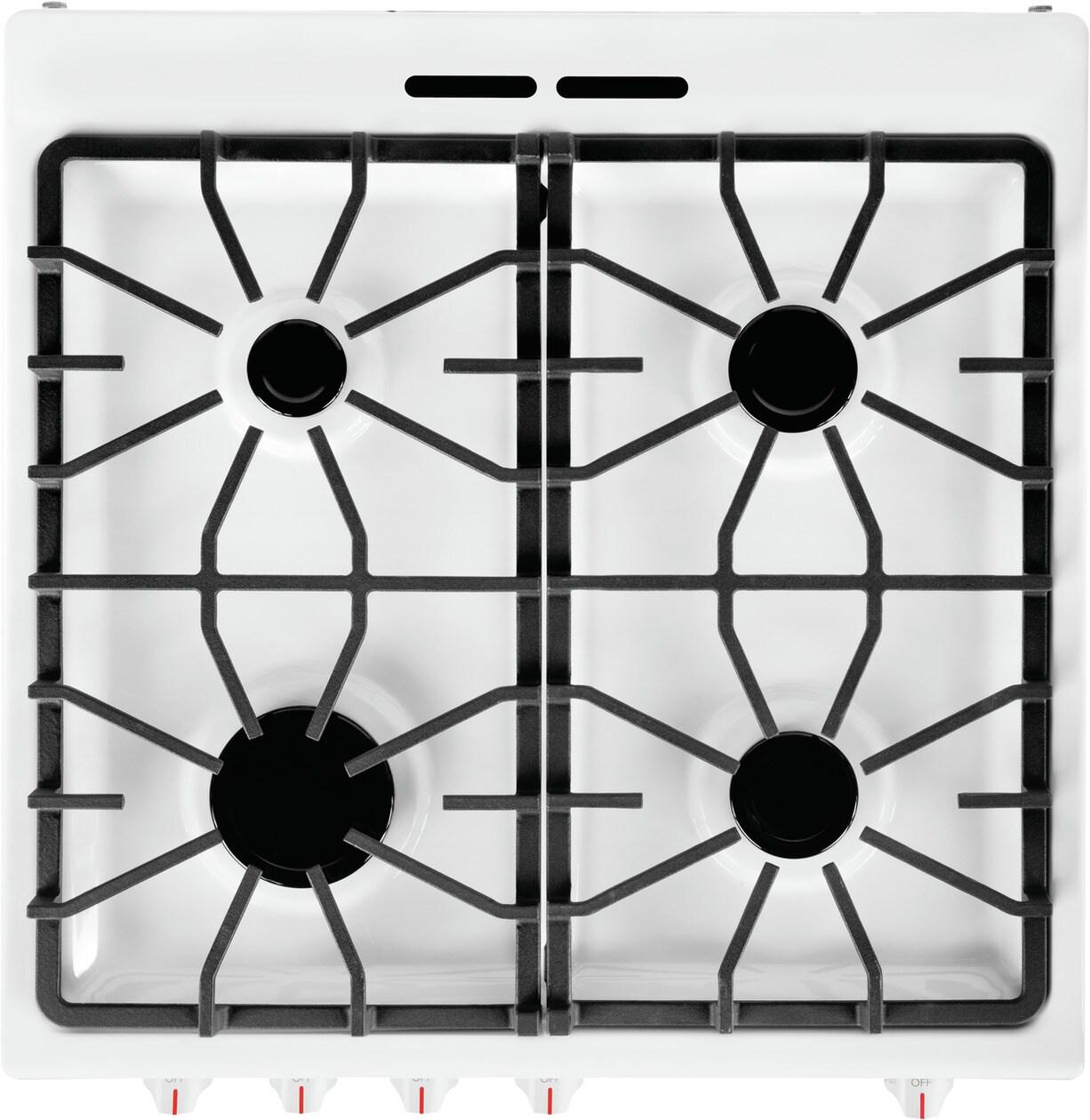 The Frigidaire 24" freestanding gas range has a compact design for smaller kitchen spaces. Continuous grates make it easy to move heavy pots and pans between burners without lifting. Convenient storage drawer offers extra space to store your cookware.