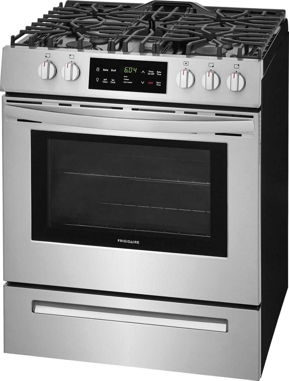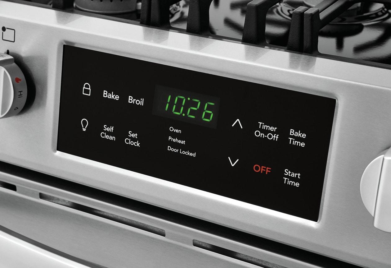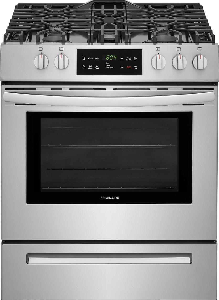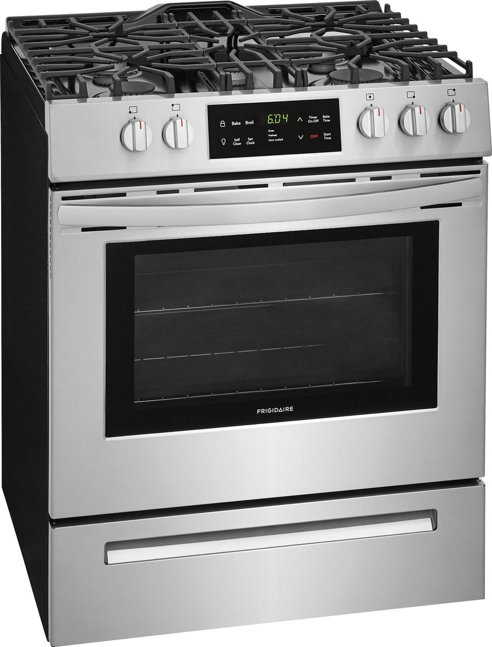 The Frigidaire 30" Gas Range offers the look of a built-in range, without the remodel. The powerful five element cooktop is designed to handle all of your cooking needs. Get meals to the table faster with Quick Boil, fit large pots and pans with the extra large element, and keep food warm until everyone's ready to eat with the Keep Warm Zone. Clean up is a breeze with 2 and 3 hour self-clean cycles.