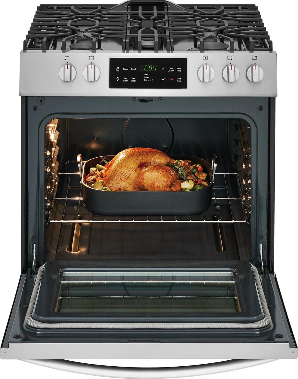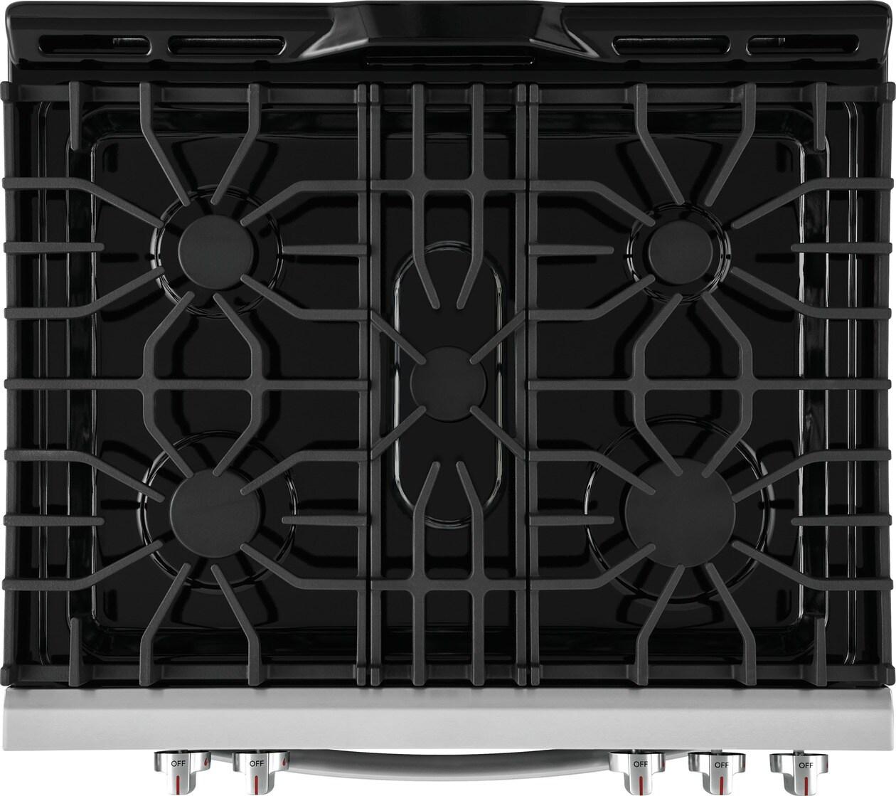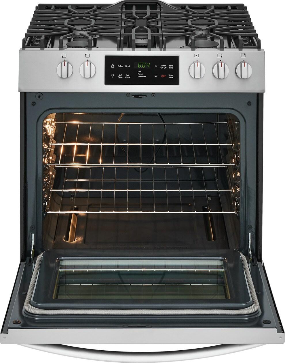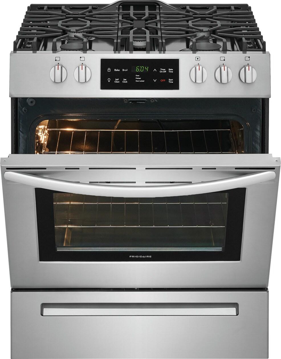 The Frigidaire 30" Gas Range offers the look of a built-in range, without the remodel. The powerful five element cooktop is designed to handle all of your cooking needs. Get meals to the table faster with Quick Boil, fit large pots and pans with the extra large element, and keep food warm until everyone's ready to eat with the Keep Warm Zone. Clean up is a breeze with 2 and 3 hour self-clean cycles.
