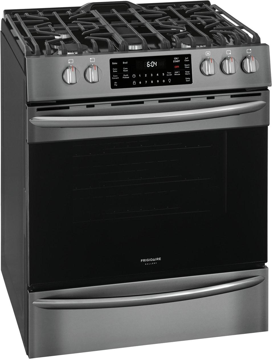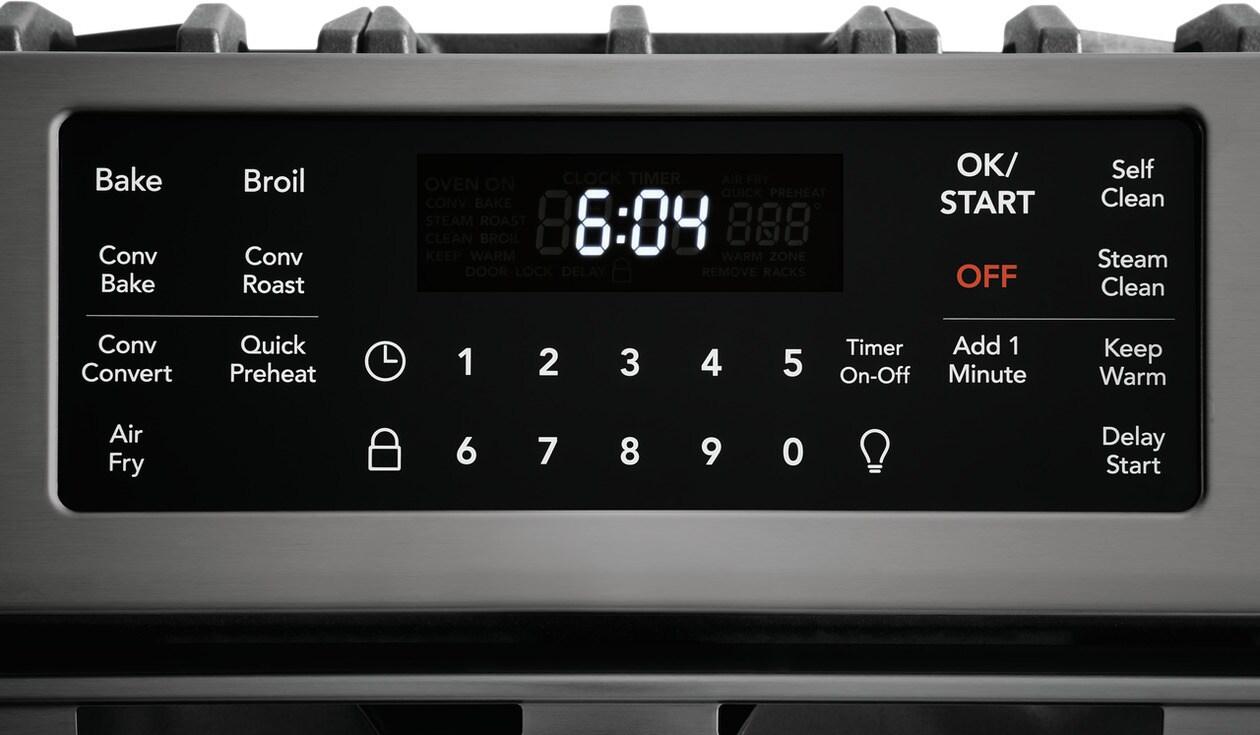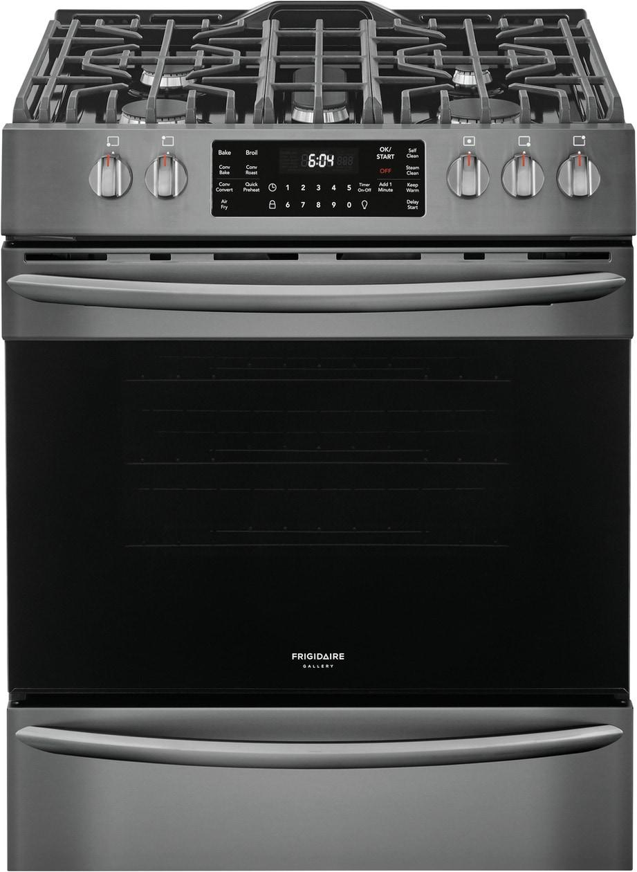 This 30" Frigidaire Gallery Front Control Range is packed with time-saving features like True Convection, a powerful 18k BTU Quick Boil Burner and Steam Clean. Plus, this range is the first on the market to offer Air Fry, at the touch of a button.
