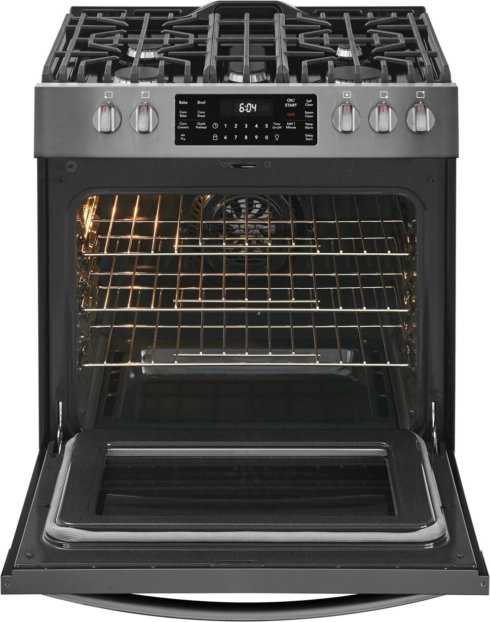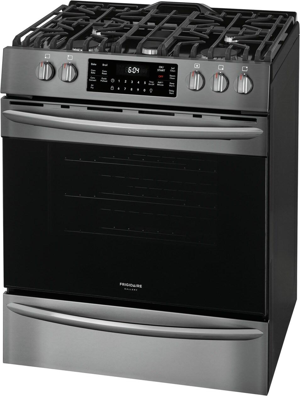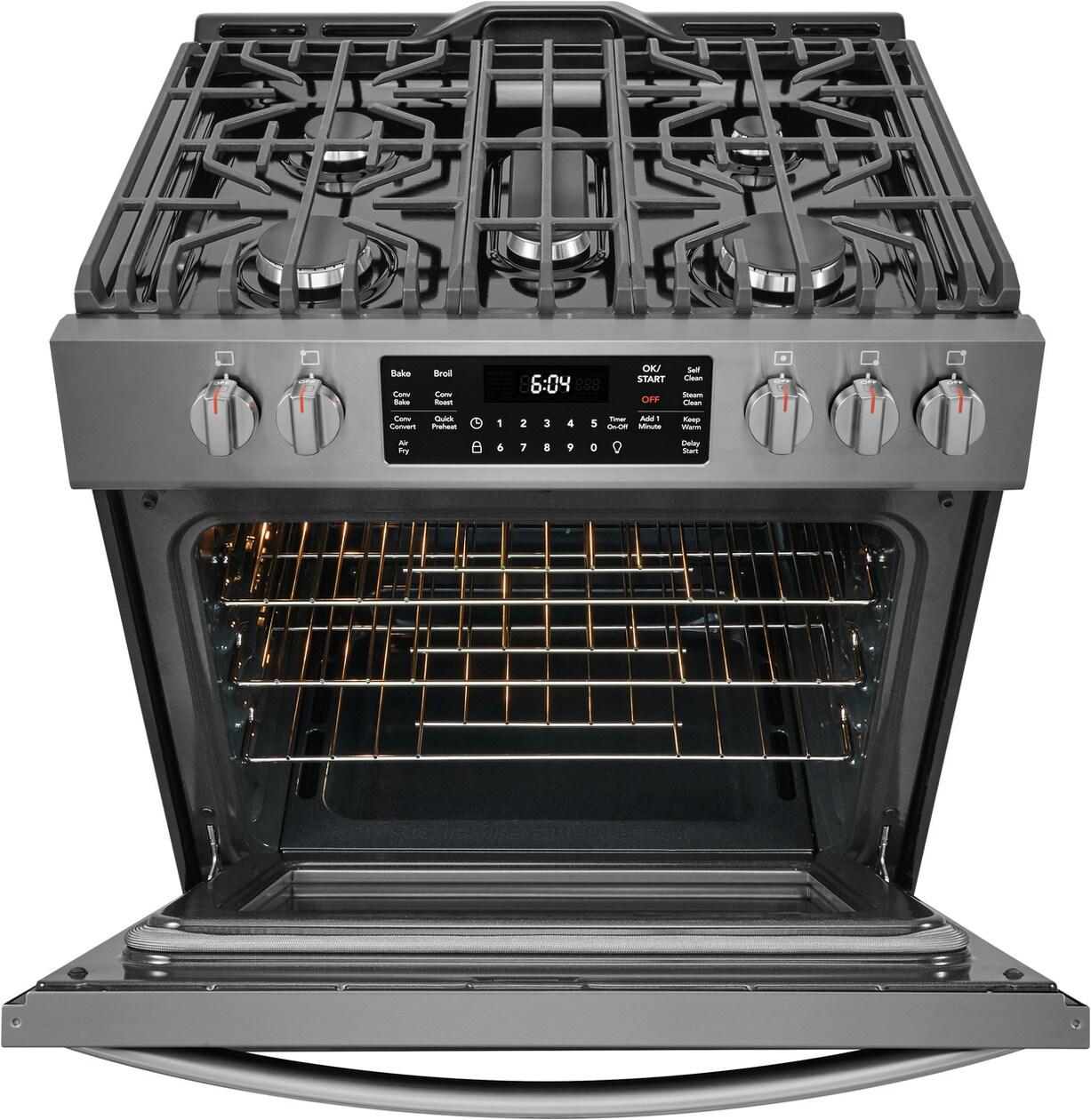 This 30" Frigidaire Gallery Front Control Range is packed with time-saving features like True Convection, a powerful 18k BTU Quick Boil Burner and Steam Clean. Plus, this range is the first on the market to offer Air Fry, at the touch of a button.
