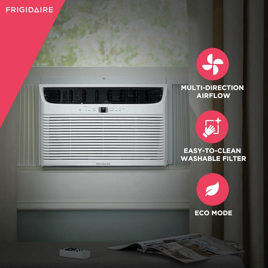 The Frigidaire 28,000 BTU window air conditioner keeps your room cool and comfortable with optimum circulation thanks to multi-directional airflow and three fan speeds. Easily install this air conditioner; this unit distributes the weight into two pieces using a slide-out chassis. Capture dust from the air and keep your air conditioner working efficiently with our easy-to-clean washable filter.