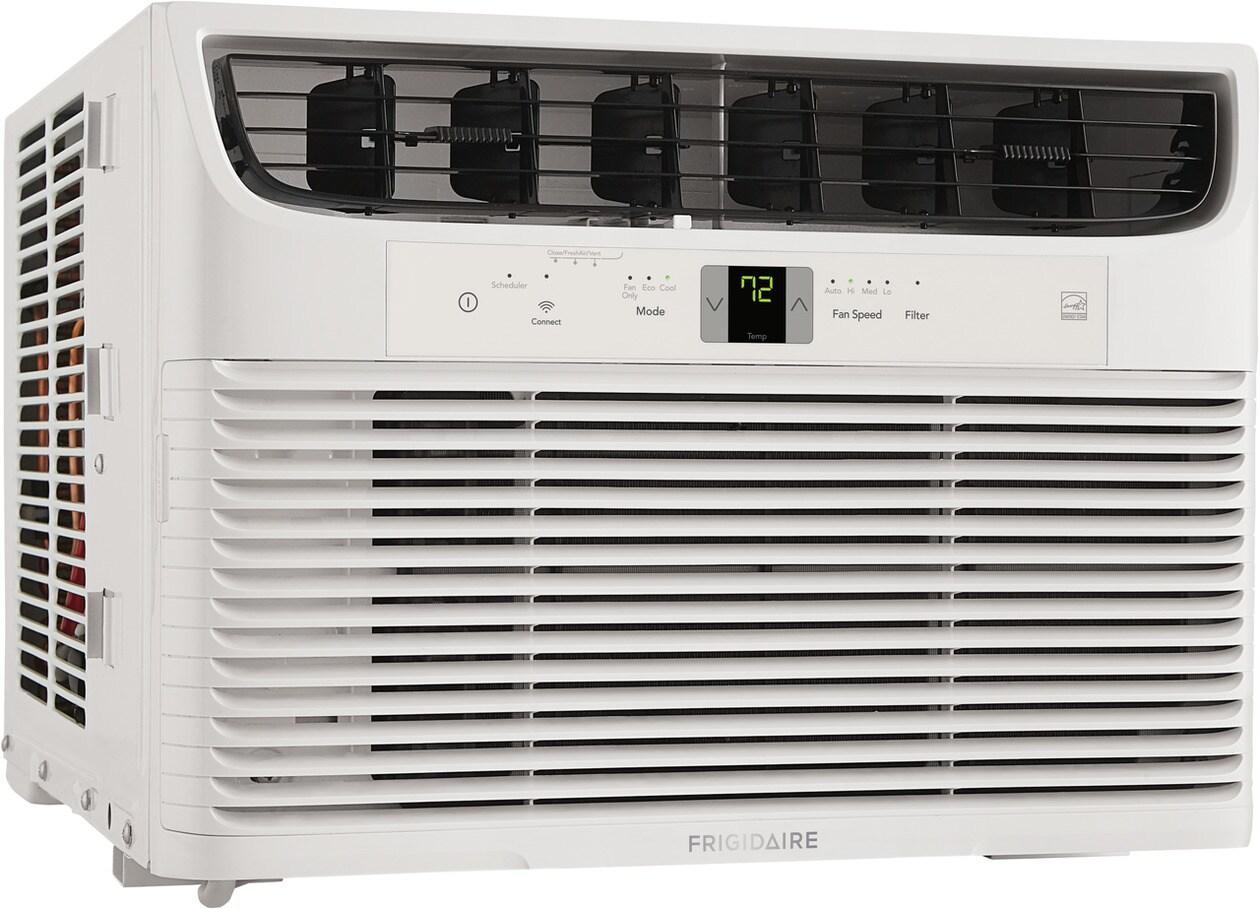 The Frigidaire 10,000 btu connected window-mounted room air conditioner cools your room anywhere, anytime from your smart device with the Frigidaire app. At your convenience remotely turn the unit on or off, change temperatures, control modes, create custom schedules, and adapt fan speeds to best meet your comfort.