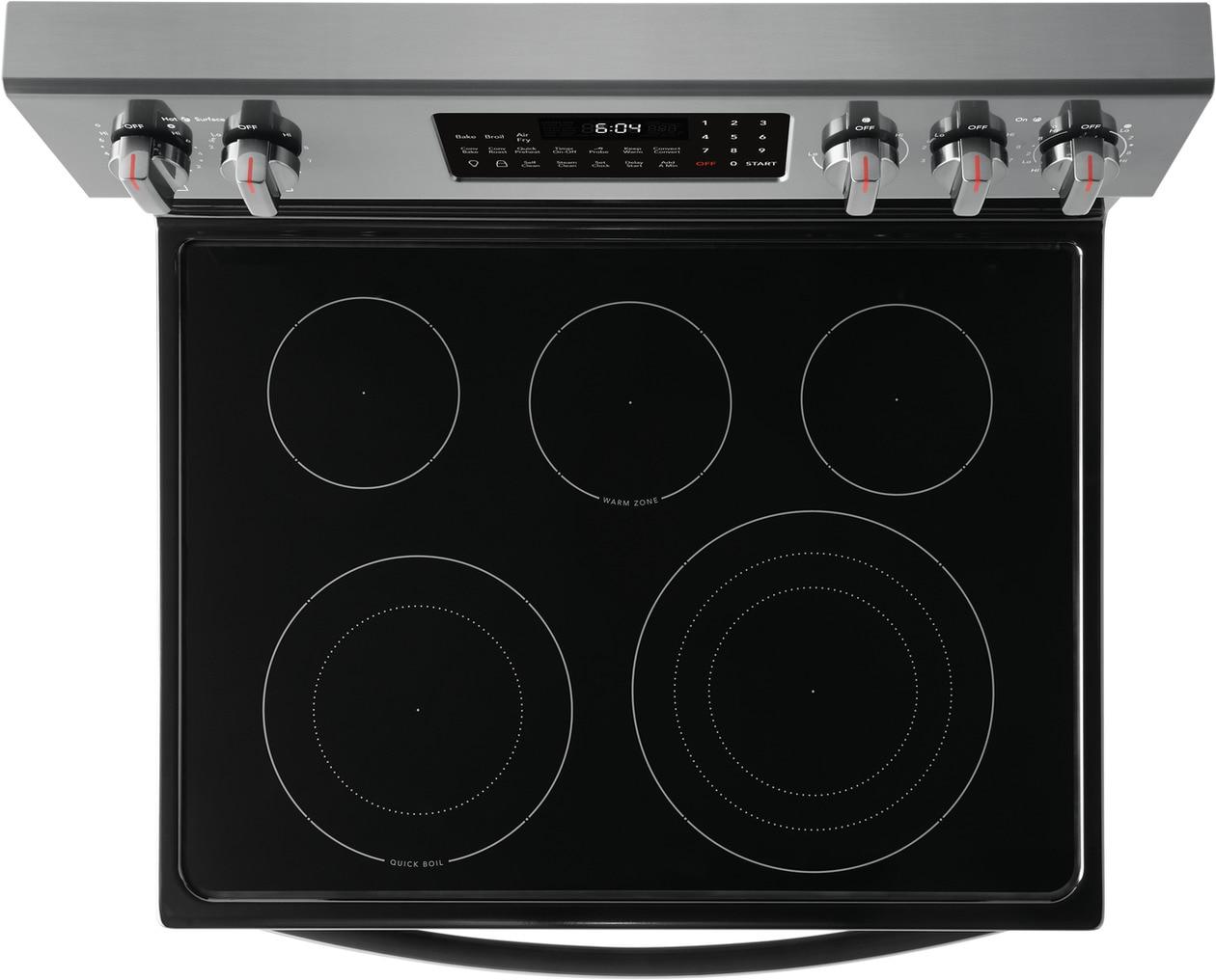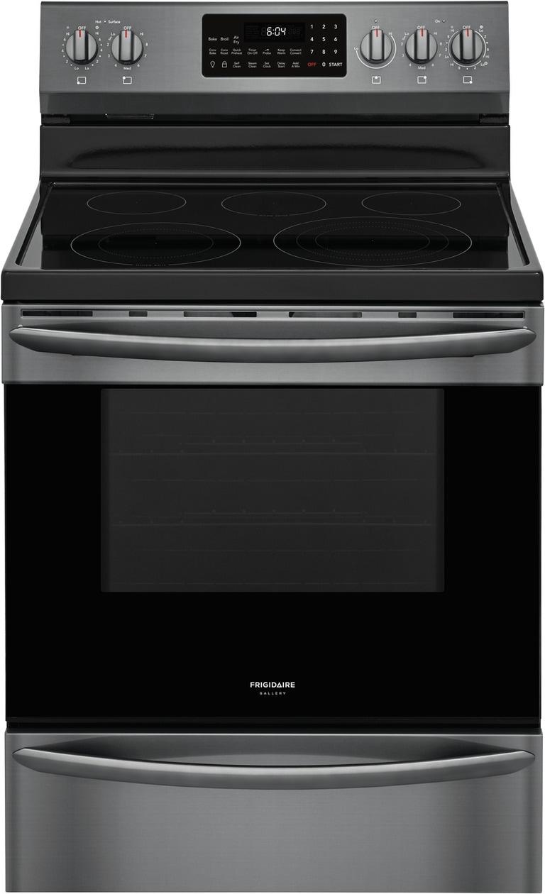 The Frigidaire Gallery 30" Electric Range with Air Fry is packed with time-saving features like Air Fry, True Convection, a powerful 3,000W Quick Boil element and a convenient 30-minute Steam Clean.