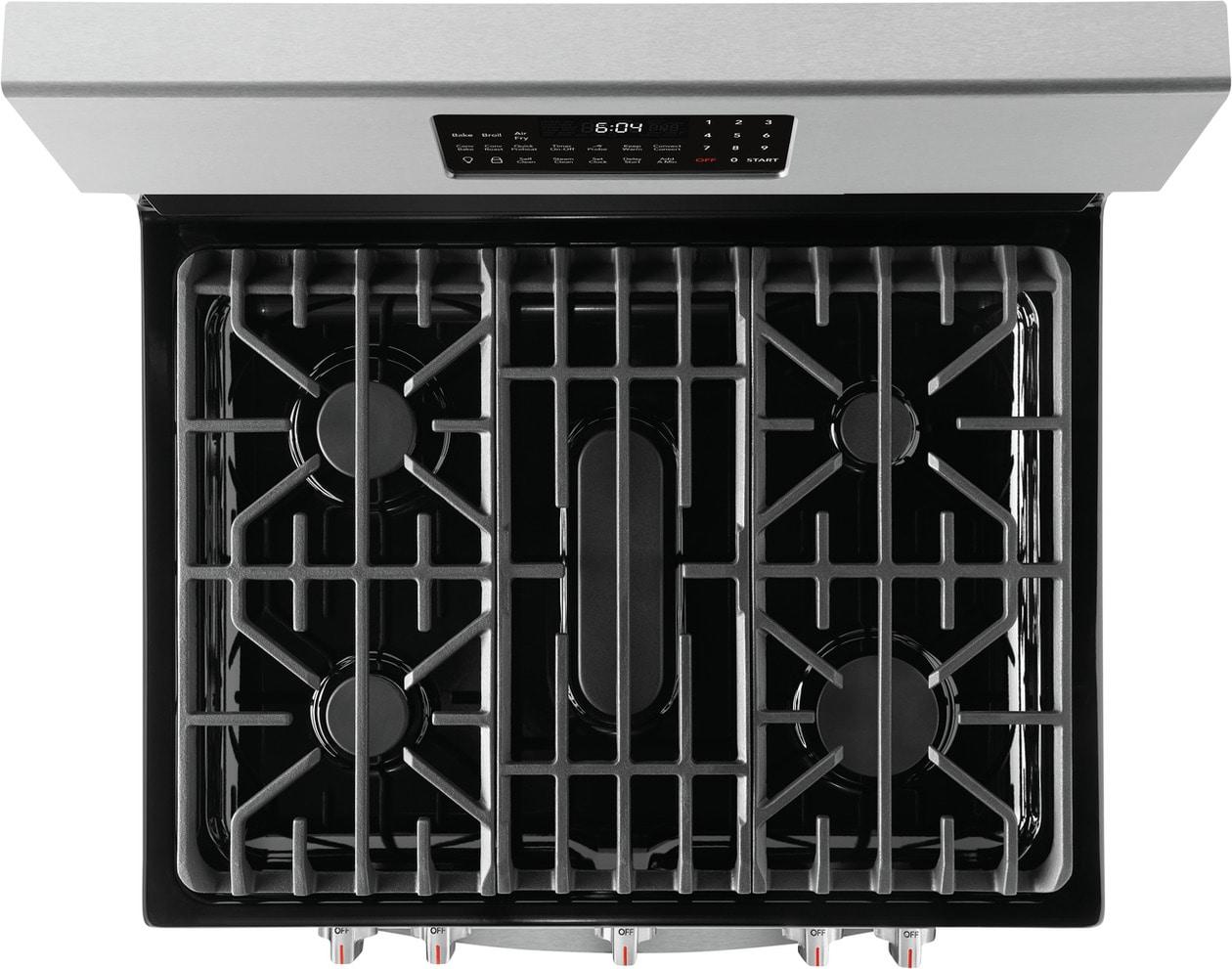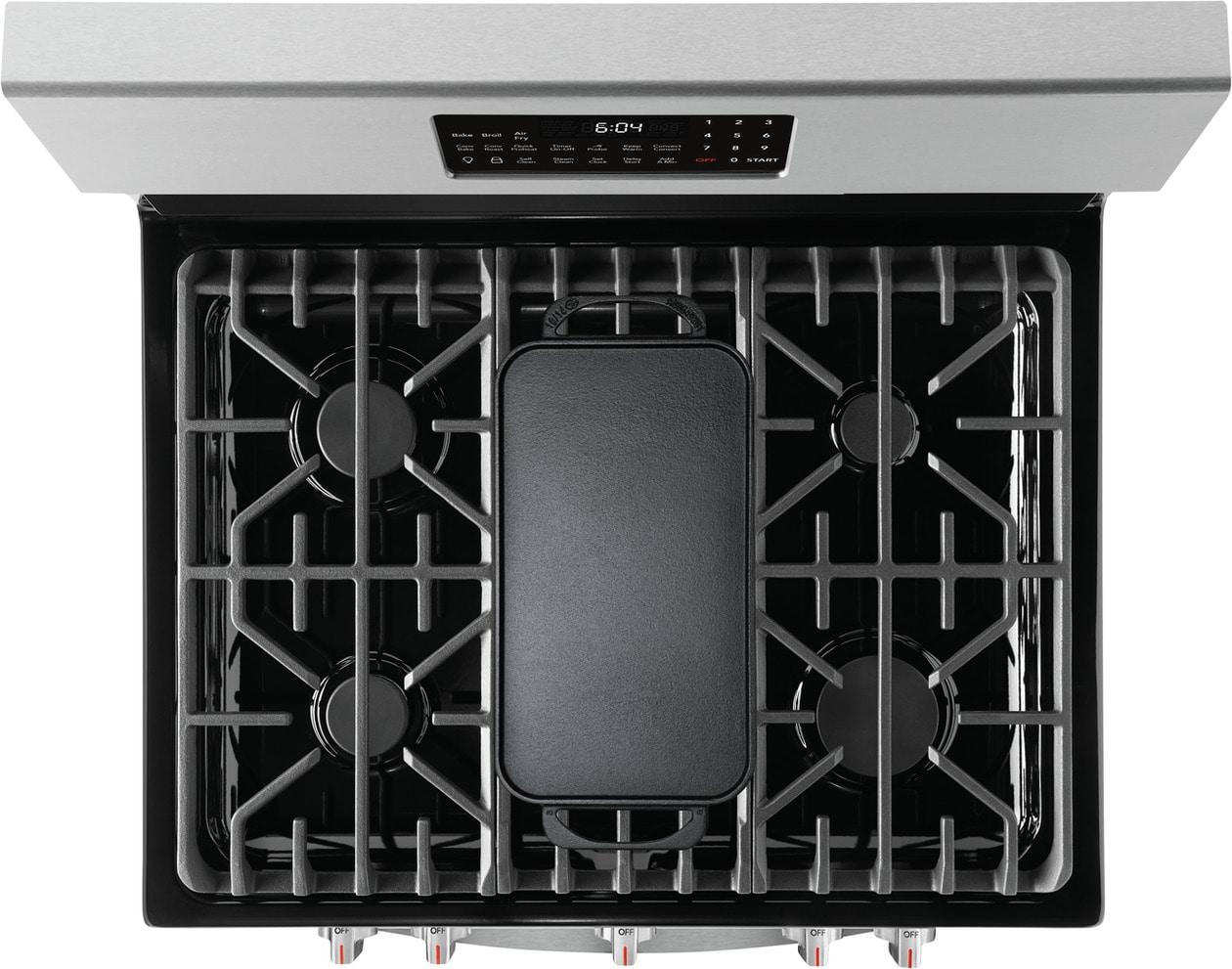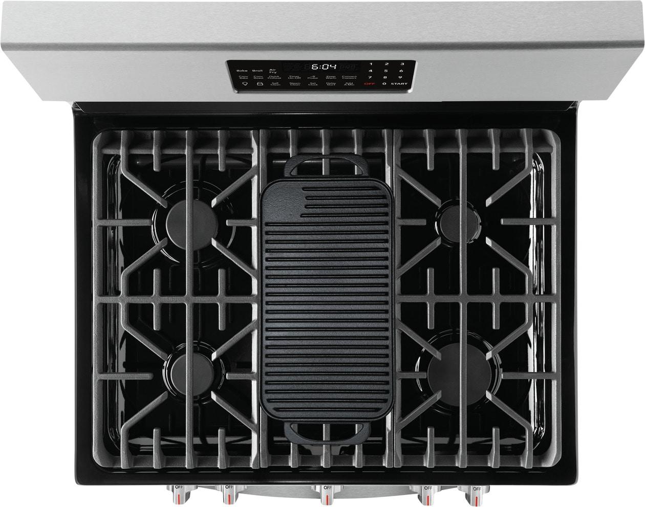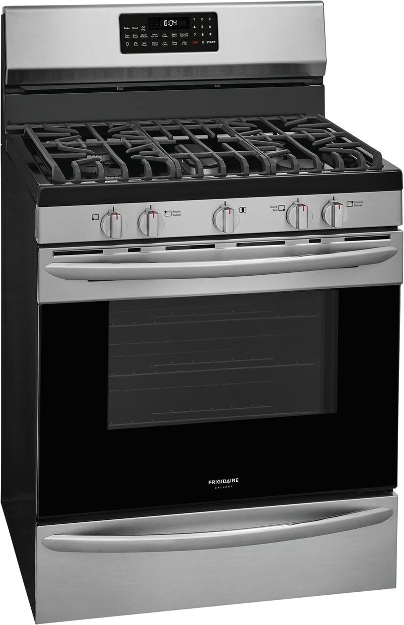 The Frigidaire Gallery 30" Gas Range with Air Fry is packed with time-saving features like Air Fry, True Convection, a powerful 18k BTU Quick Boil Burner and a convenient 30-minute Steam Clean.