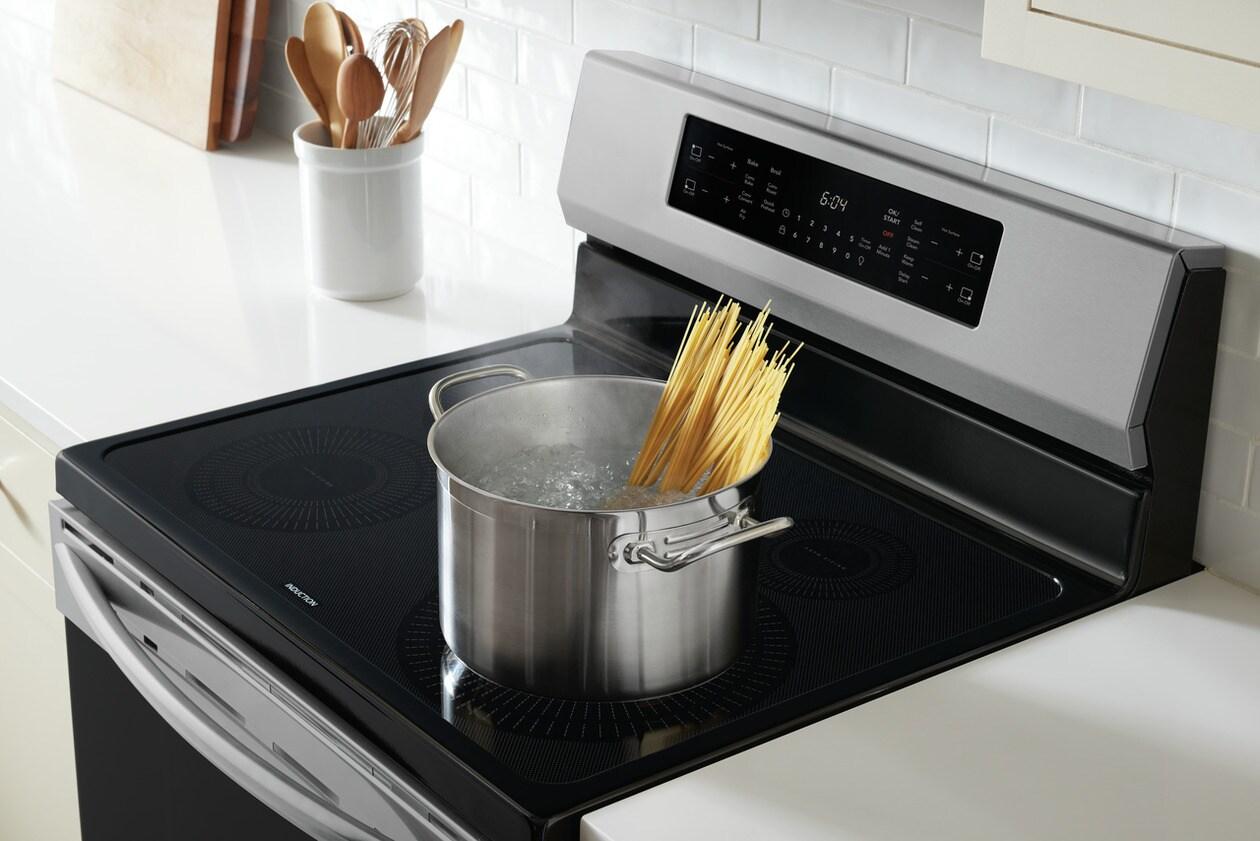 Maximize kitchen functionality with the Frigidaire Gallery 30 in. Freestanding Range. The Auto Sizing pan detection feature sends focused heat for even cooking, and the True Temperature Melt and Hold feature lets you simmer ingredients for long periods. This energy-efficient 5.4 cu. ft. range uses induction technology, so the cooktop stays cool to the touch.