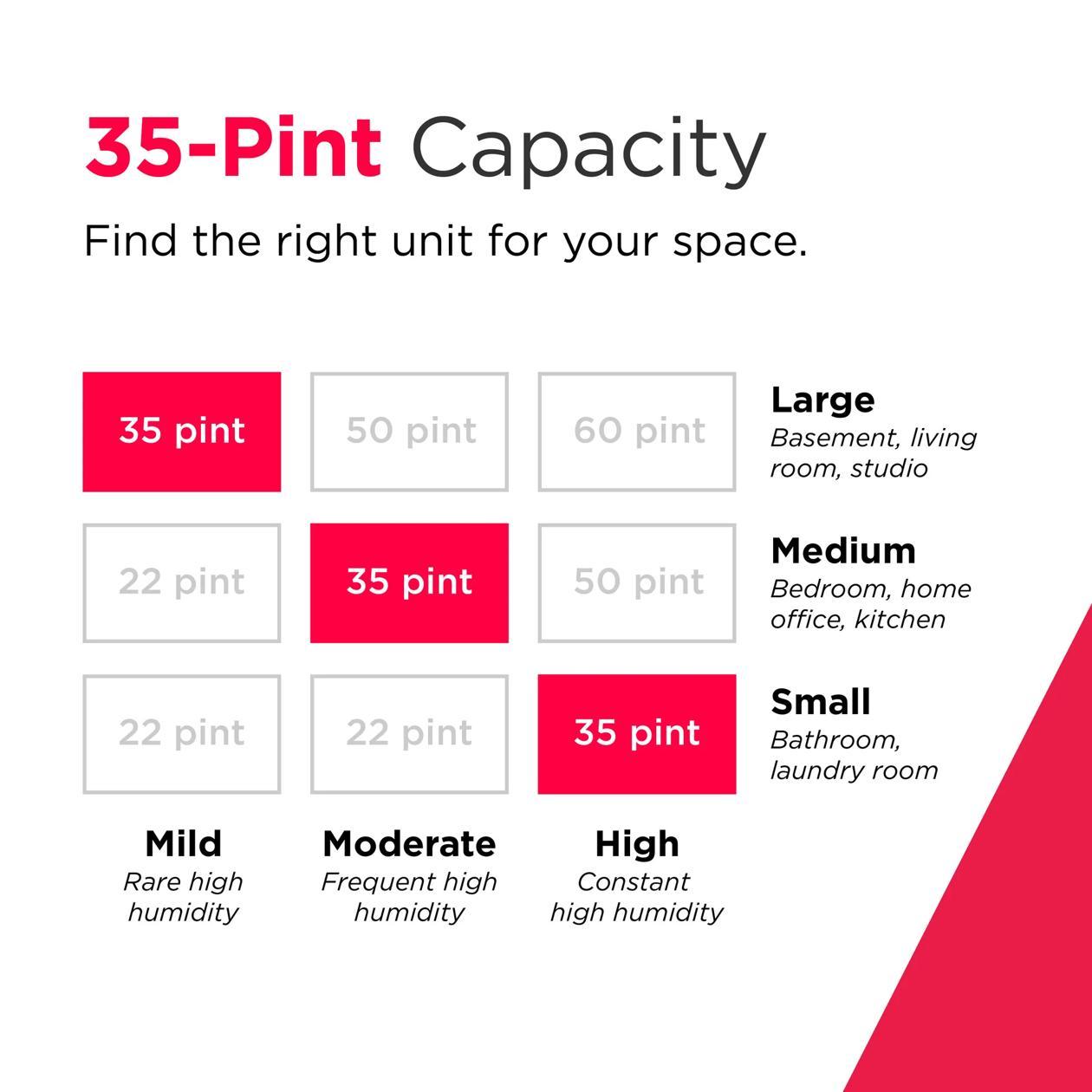 The Frigidaire Gallery 35 Pint Dehumidifier features air quality monitoring with PureAir™ Advanced Filter Technology helping you get more out of your dehumidifier. Custom Humidity Controls allow you to manage your home's humidity levels with ease and the elevated, portable design allows you to move the unit throughout your home as needed.