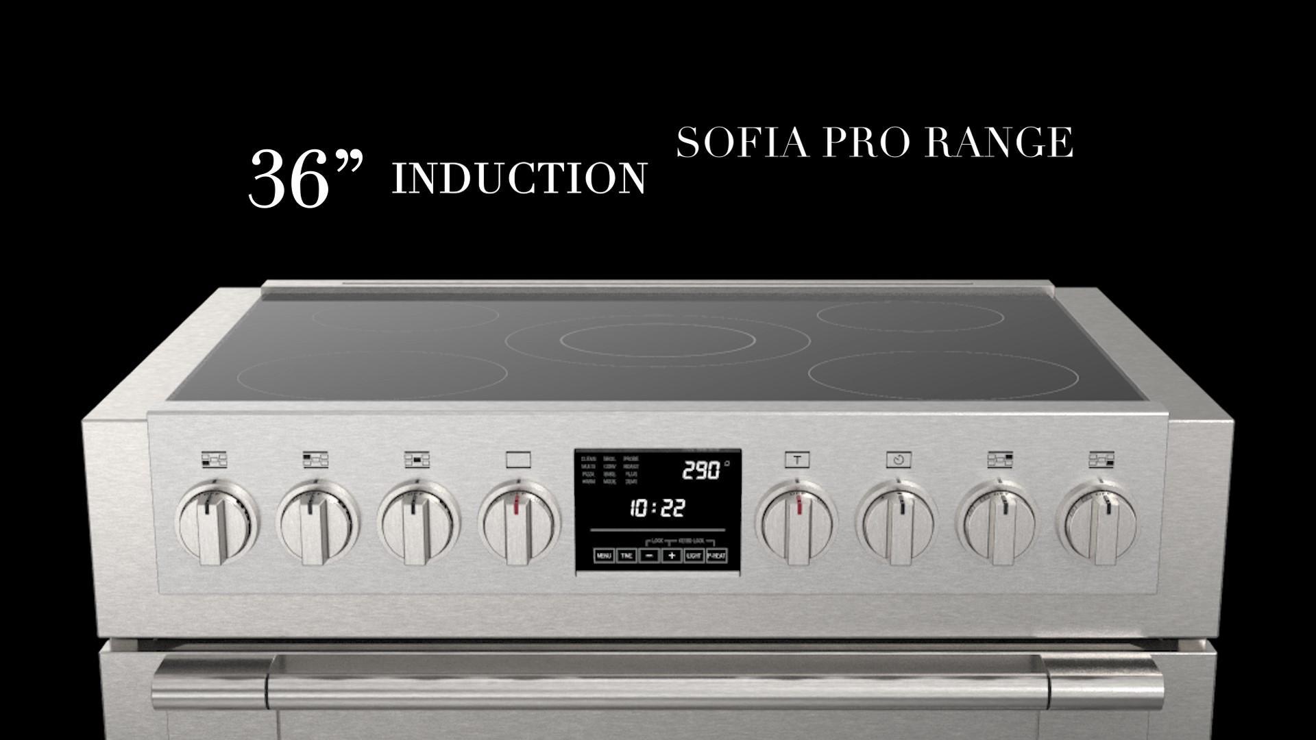 The Sofia Induction Range features a powerful premium induction technology under an elegant glass surface featuring the new 11" Dual Max Power burner. The instant response and precise control of the induction are ensured by the presence of professional control knobs.