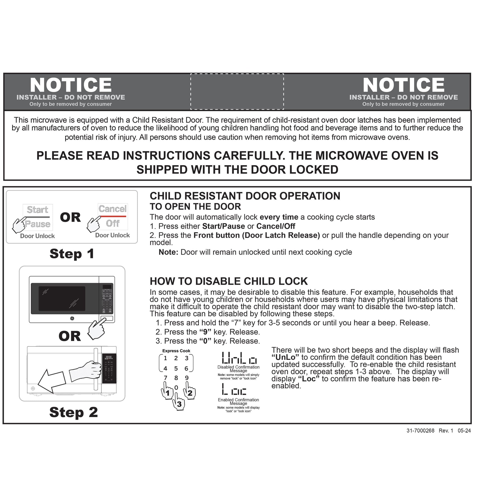 | Control Features | Add 30 Seconds Auto & Time Defrost Cancel/Off Child Lock-Out Clock - 12 Hr. Cooking Complete Reminder Express Cook - Instant-On 1-6 Minutes Sound On/Off Start/Pause Time Cook I & II Timer On/Off |