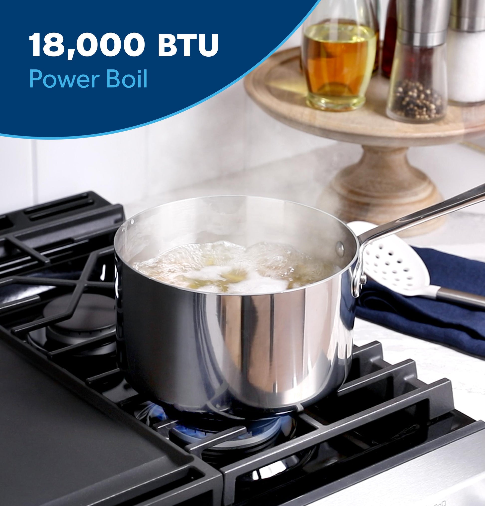Boil water faster than ever with an 15,000 BTU element that delivers high heat for quick boiling.
