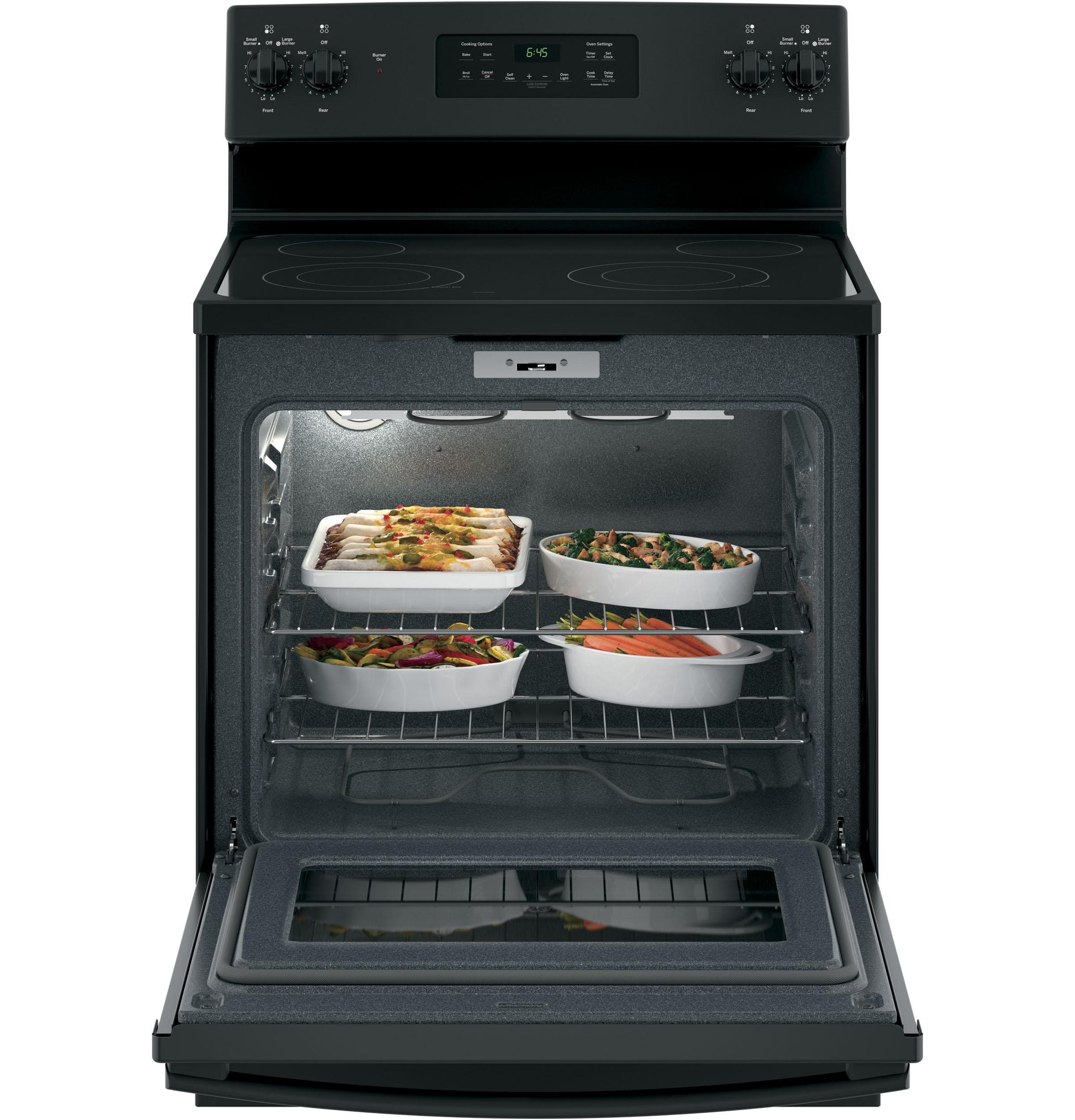 This self-cleaning oven cleans the oven cavity without the need for scrubbing or chemical cleaners