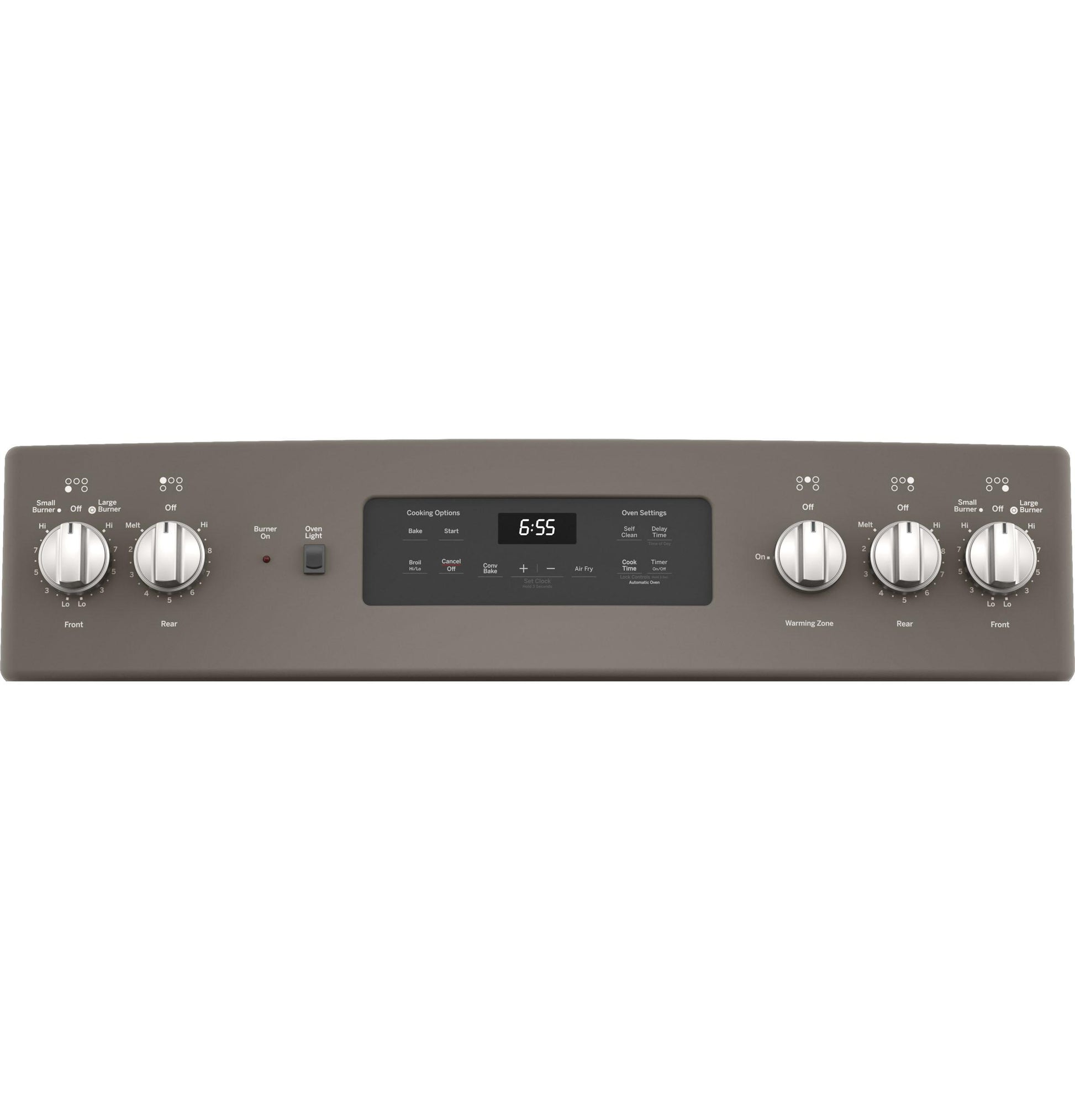 A convenient low-heat warming zone provides even temperature control for foods on the cooktop