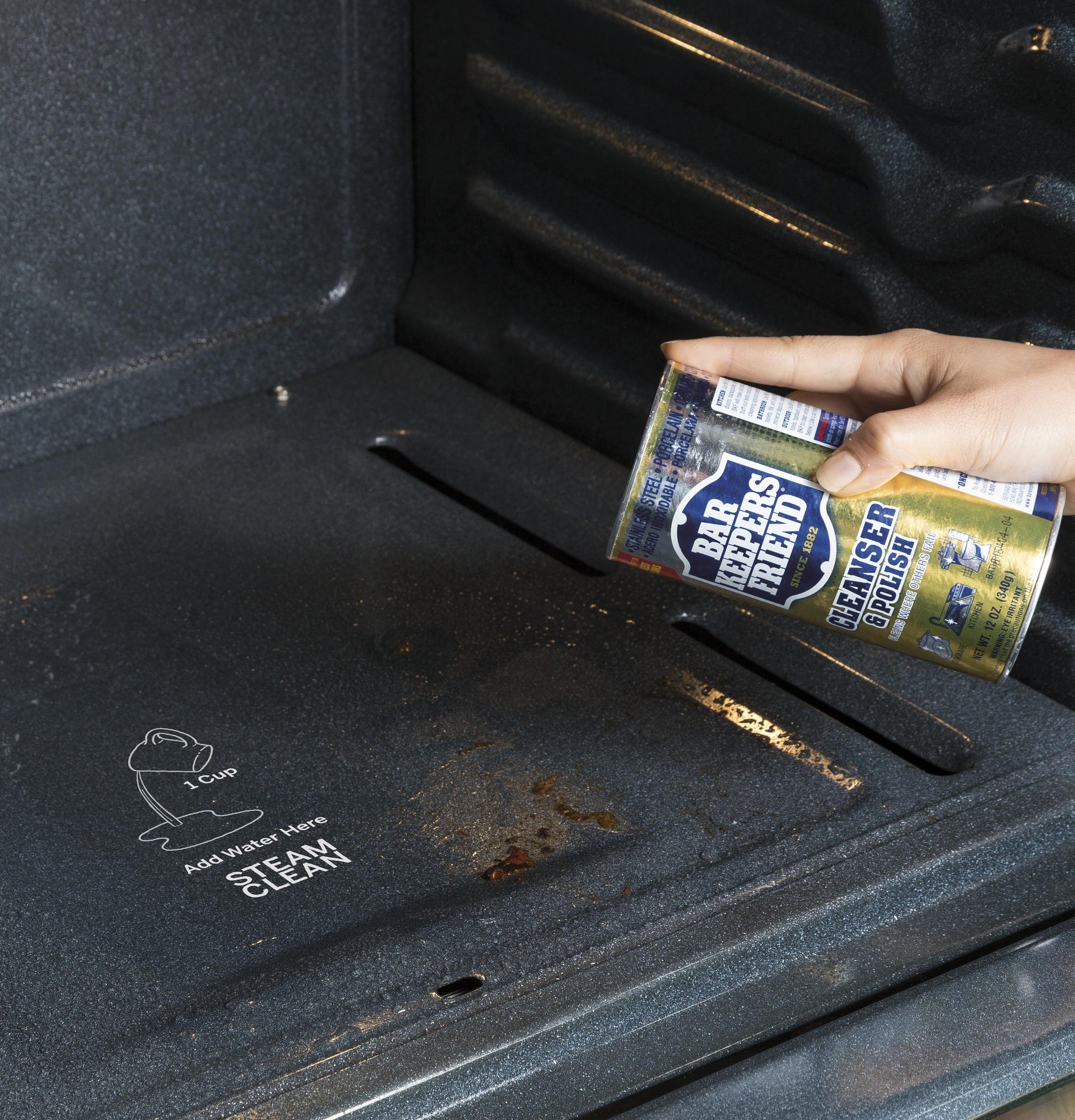 Save time and effort by steam-cleaning the oven after cooking. No special water, kits or extra steps required.