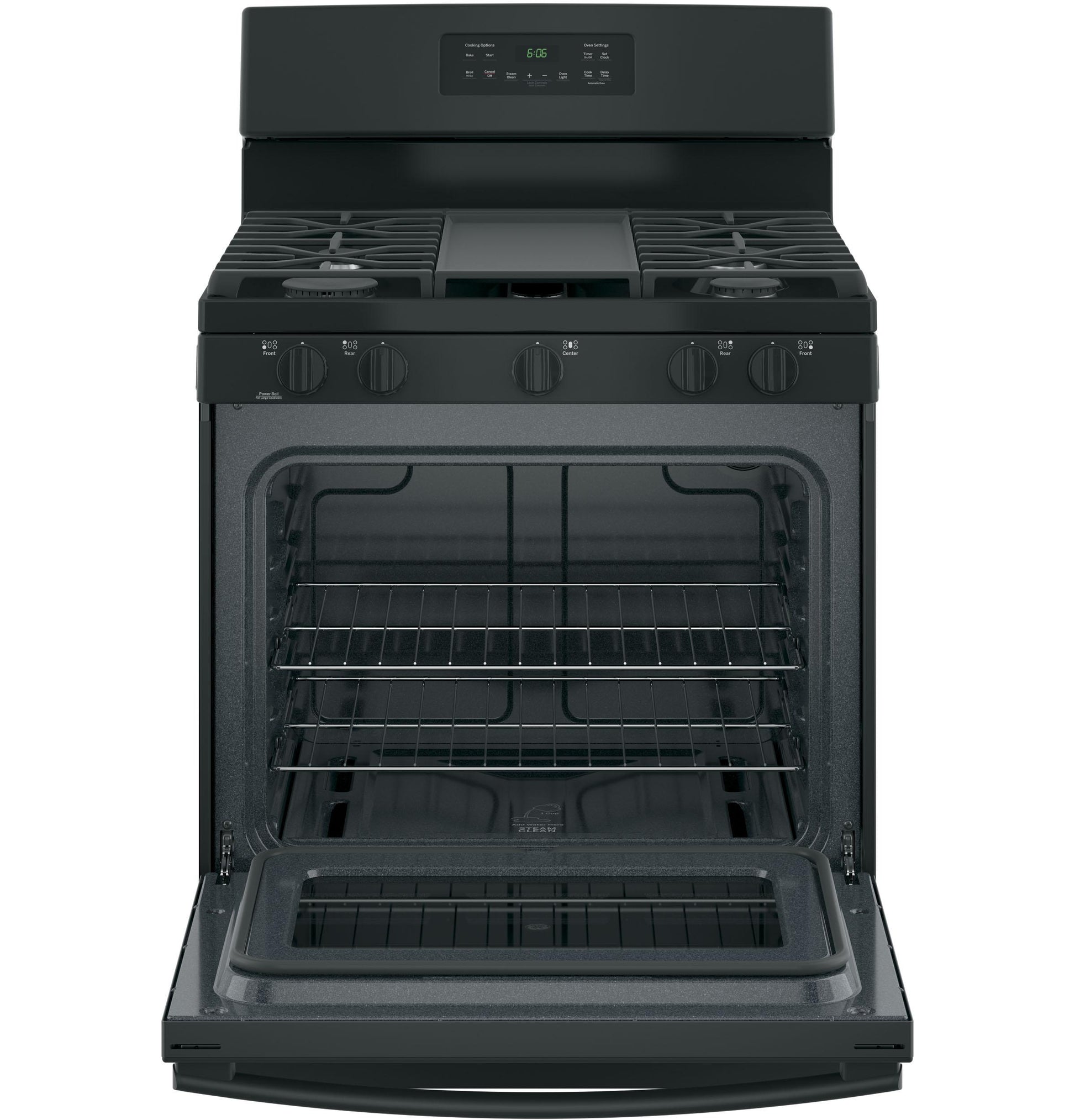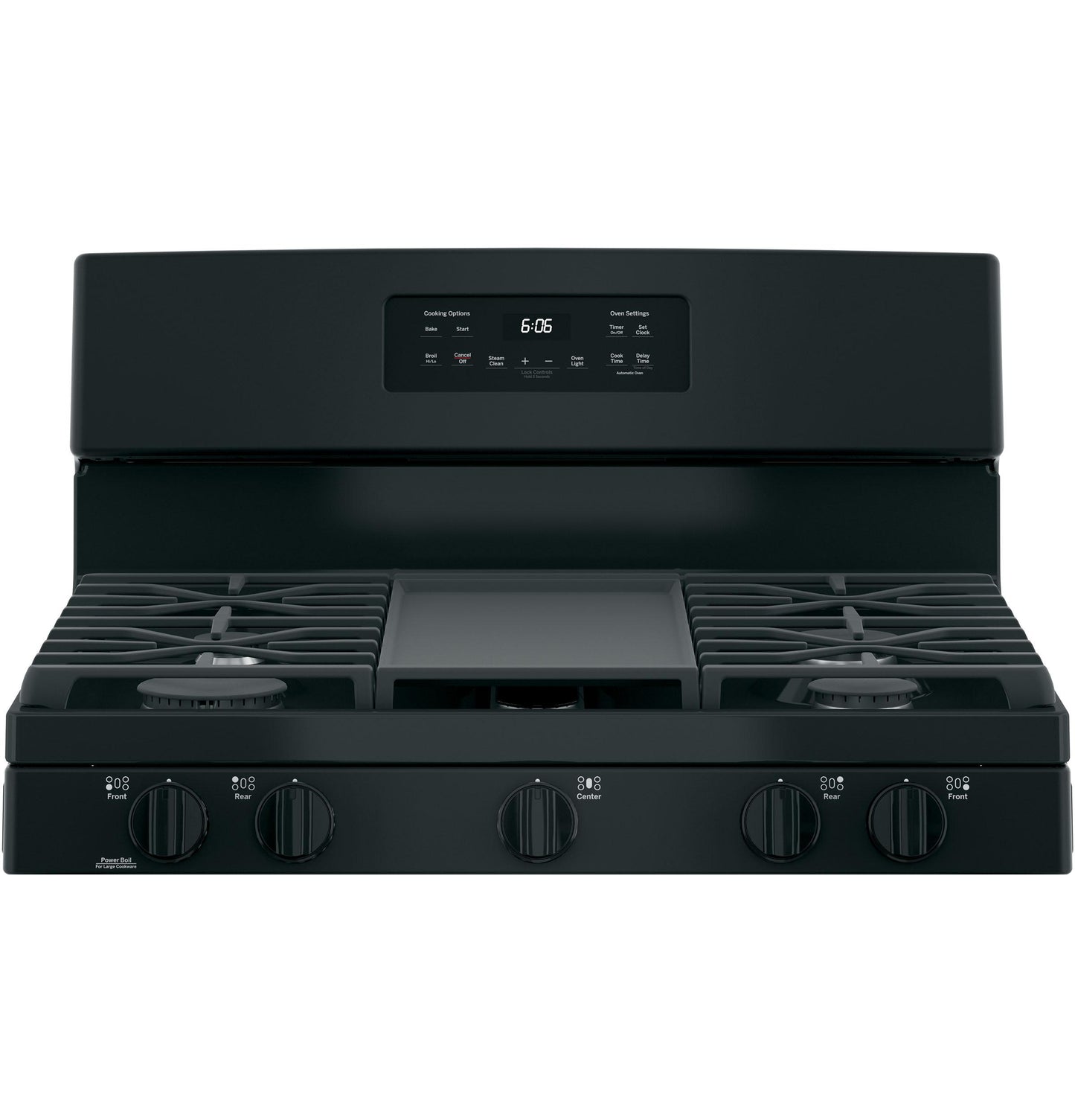 Large oval fifth burner is ideal for griddle cooking