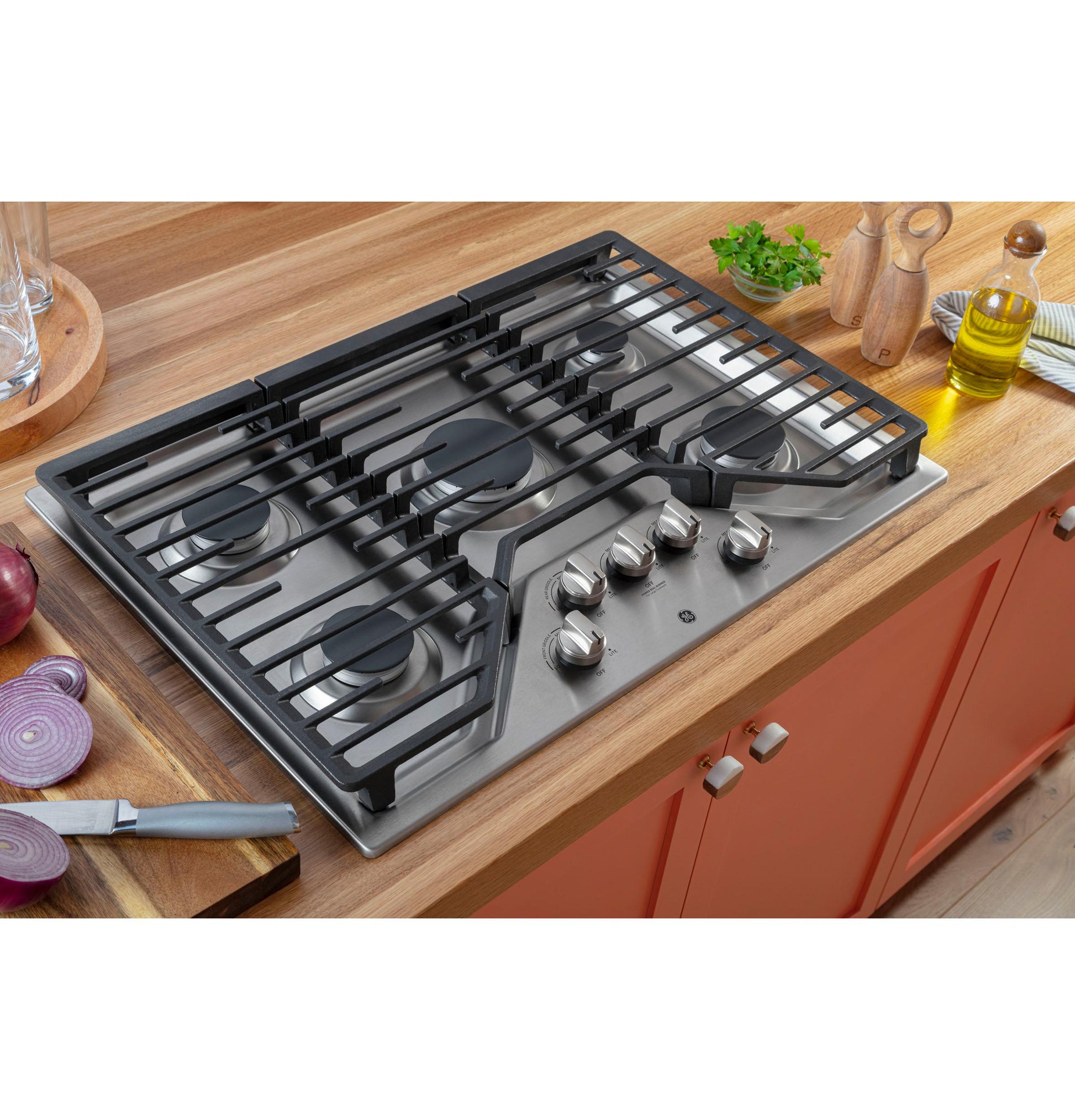 | Cooktop Burner Grate Features | Continuous Grates Dishwasher Safe Edge-to-Edge Grates |