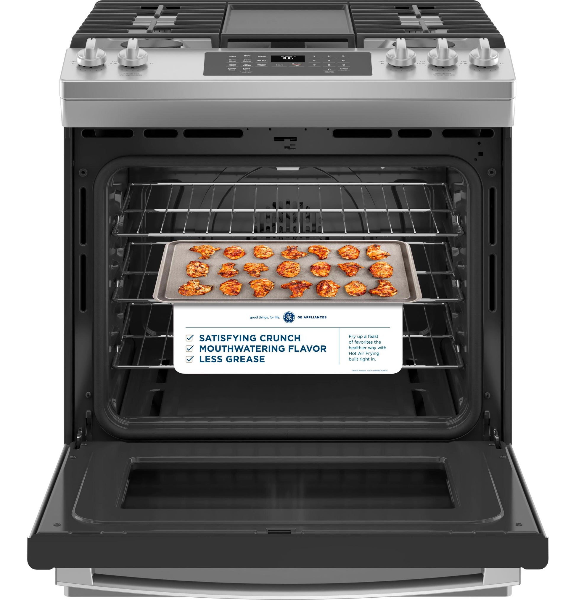 Replace your old 30" free-standing range with a new 30" slide-in model. GE slide-in ranges are guaranteed for an exact fit or GE Appliances will pay up to $300 toward modifications. See offer criteria and details