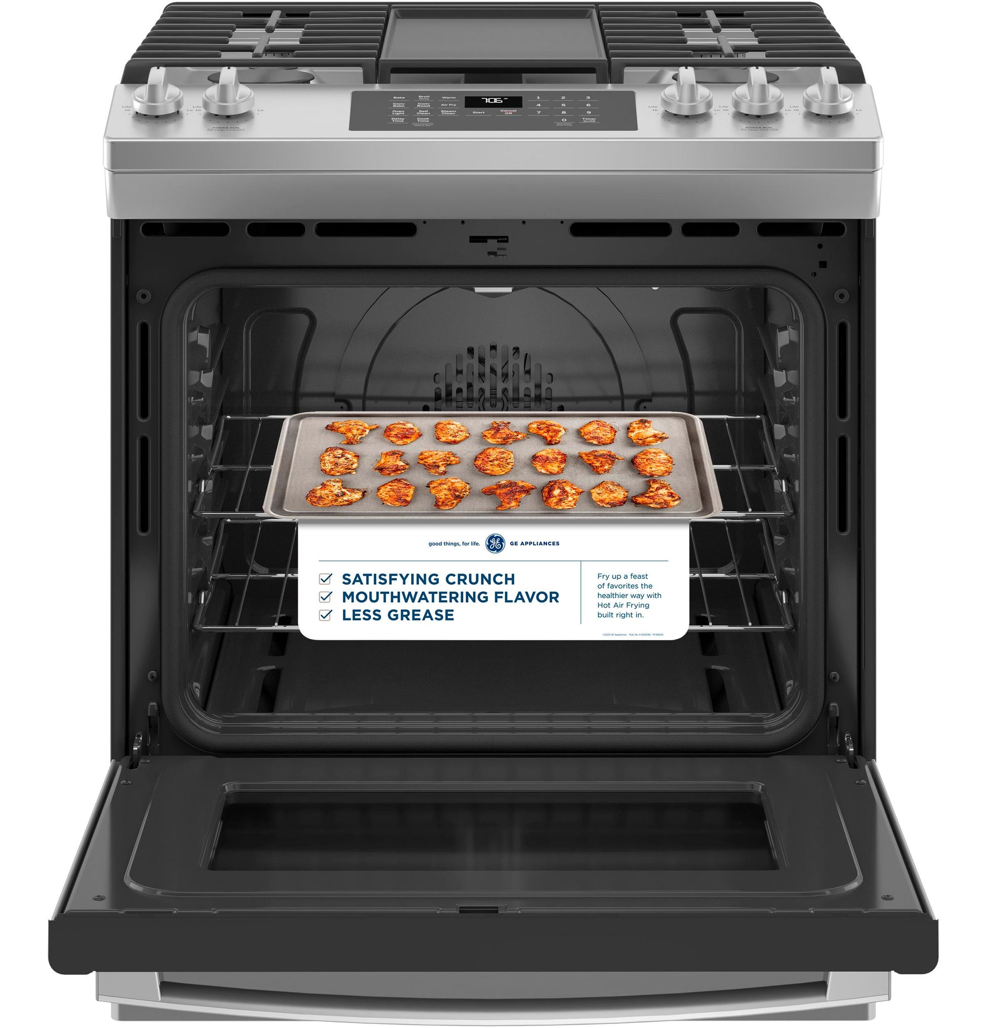 Cook healthier, crispier versions of your favorite foods in less time, thanks to an air fryer right in your oven that doesn't require preheating, a basket or a special tray