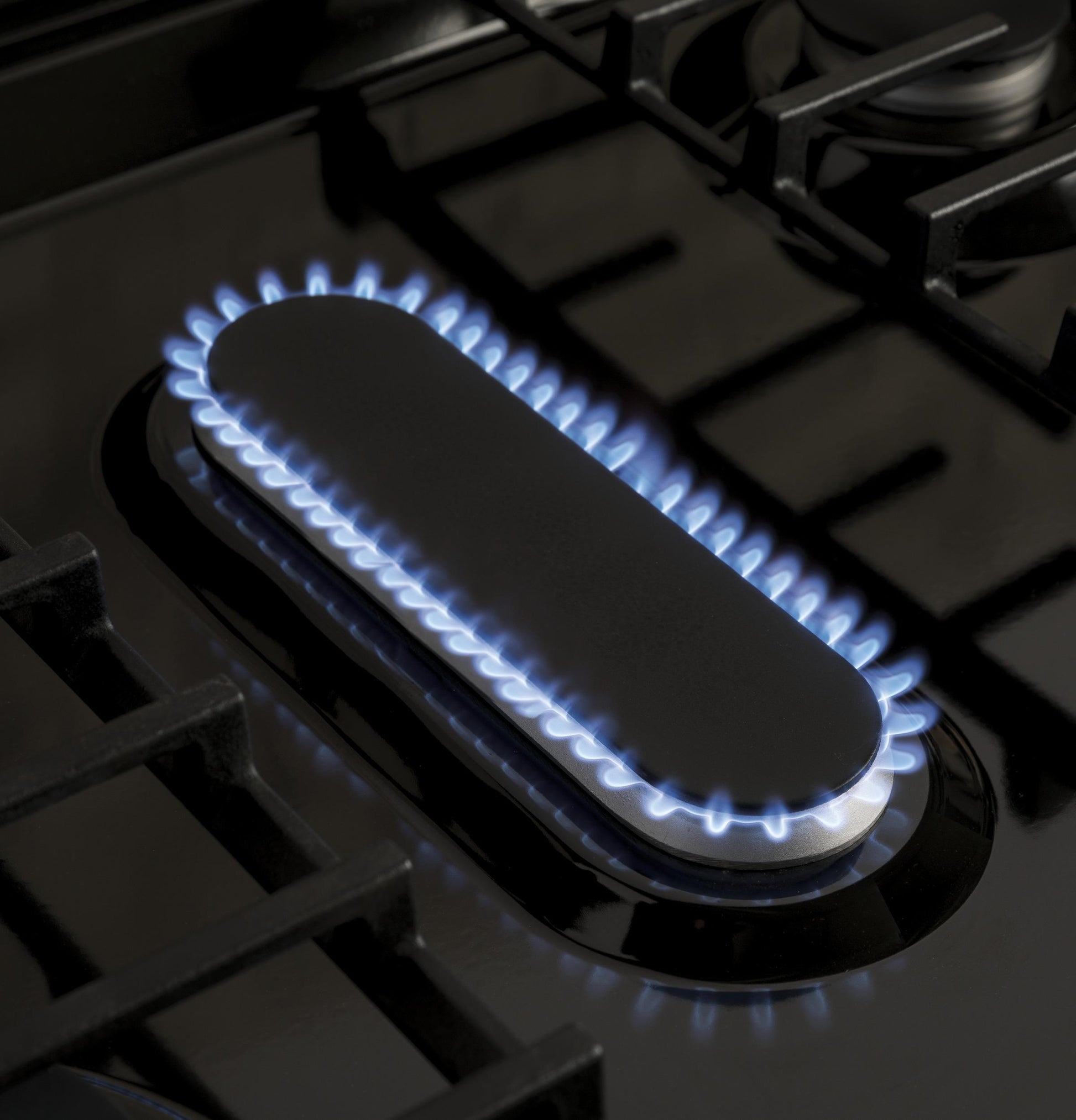 Large oval fifth burner is ideal for griddle or odd-size cookware