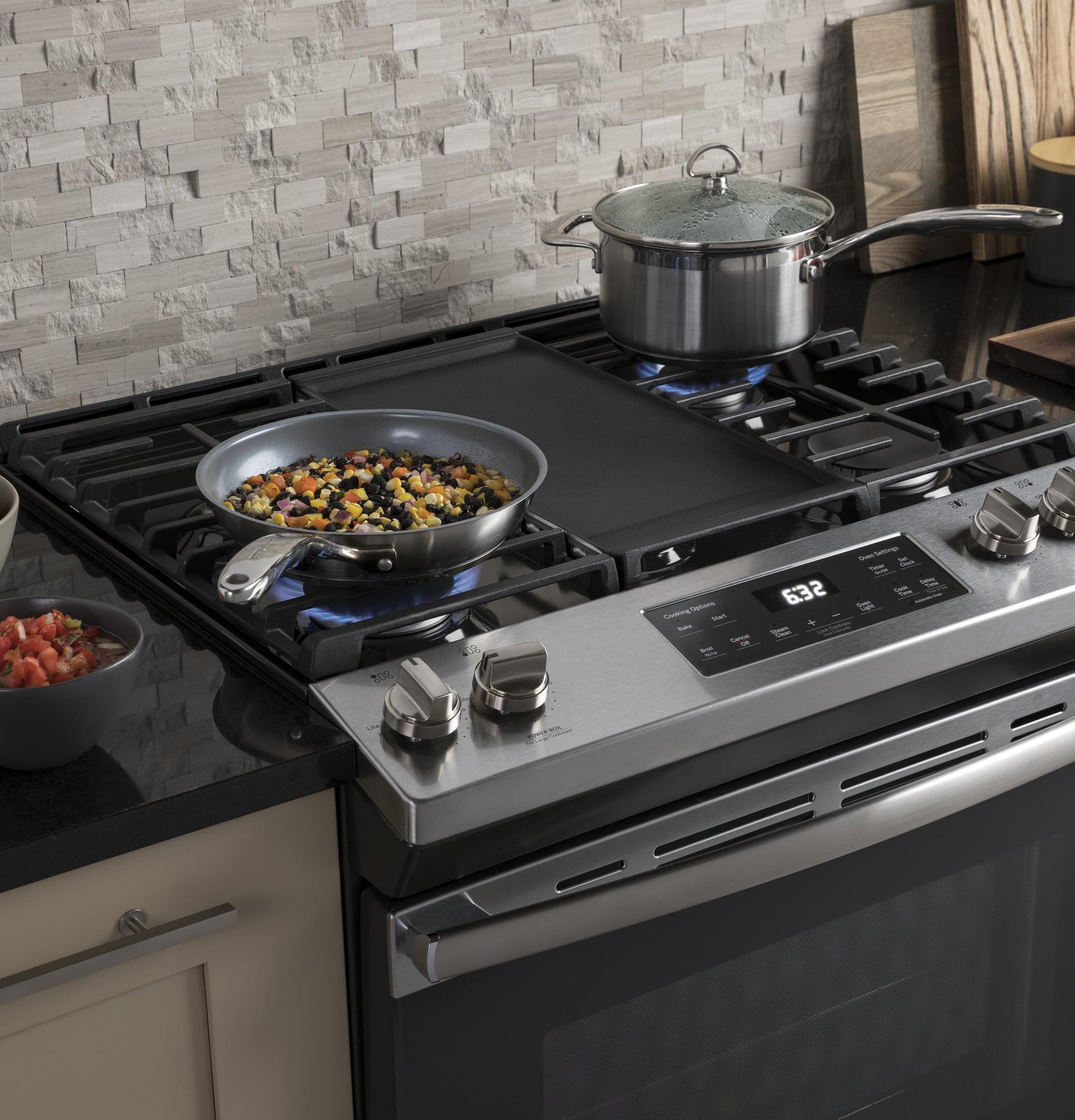 - Extra-large integrated griddle