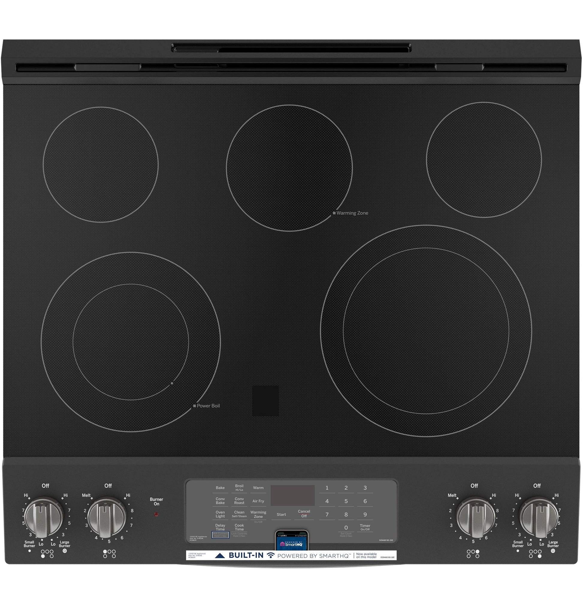 This smart oven features built-in WiFi so you can control oven functions with the SmartHQ app on your smart device