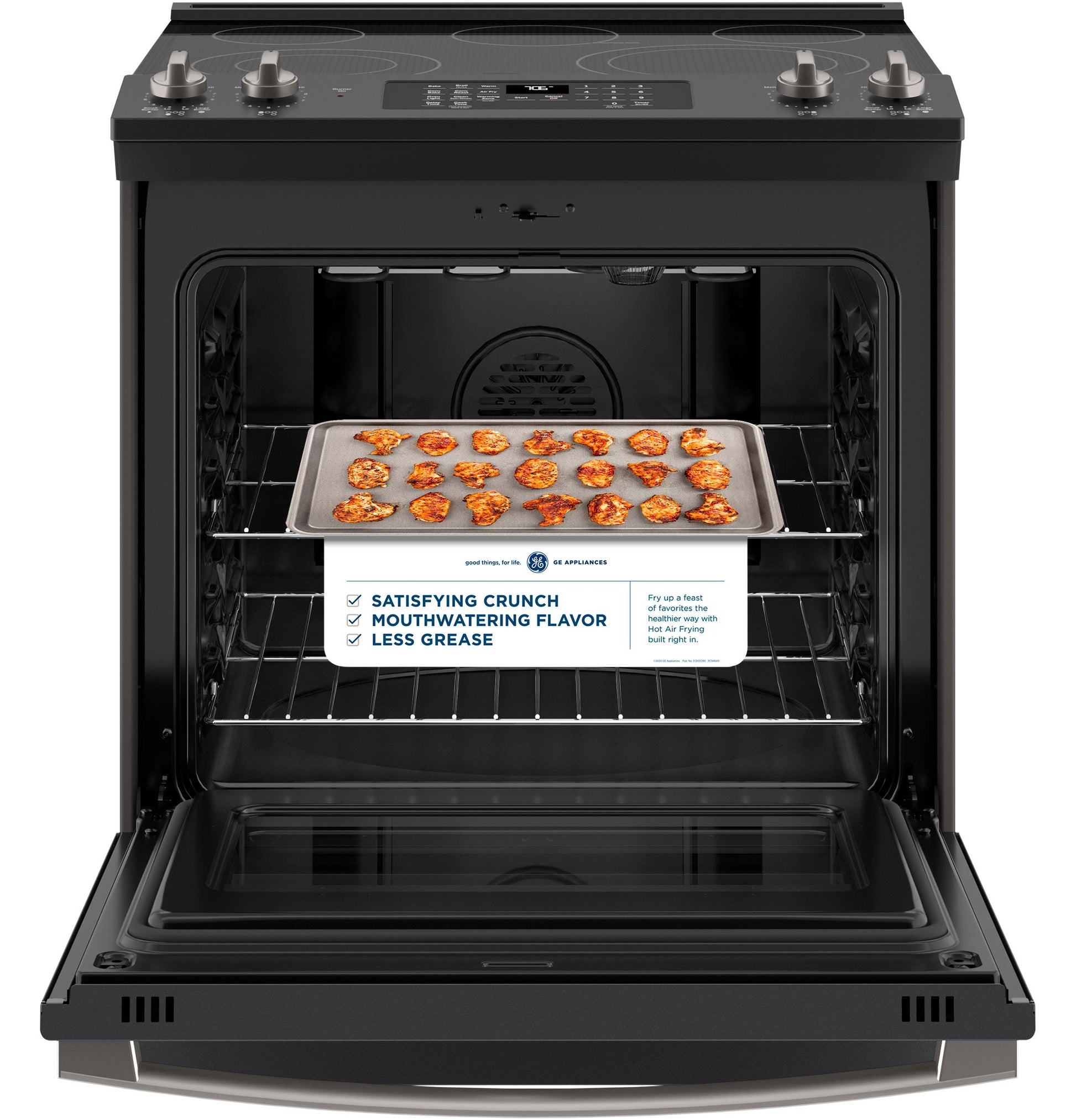 Cook healthier, crispier versions of your favorite foods in less time, thanks to an air fryer right in your oven that doesn't require preheating, a basket or a special tray