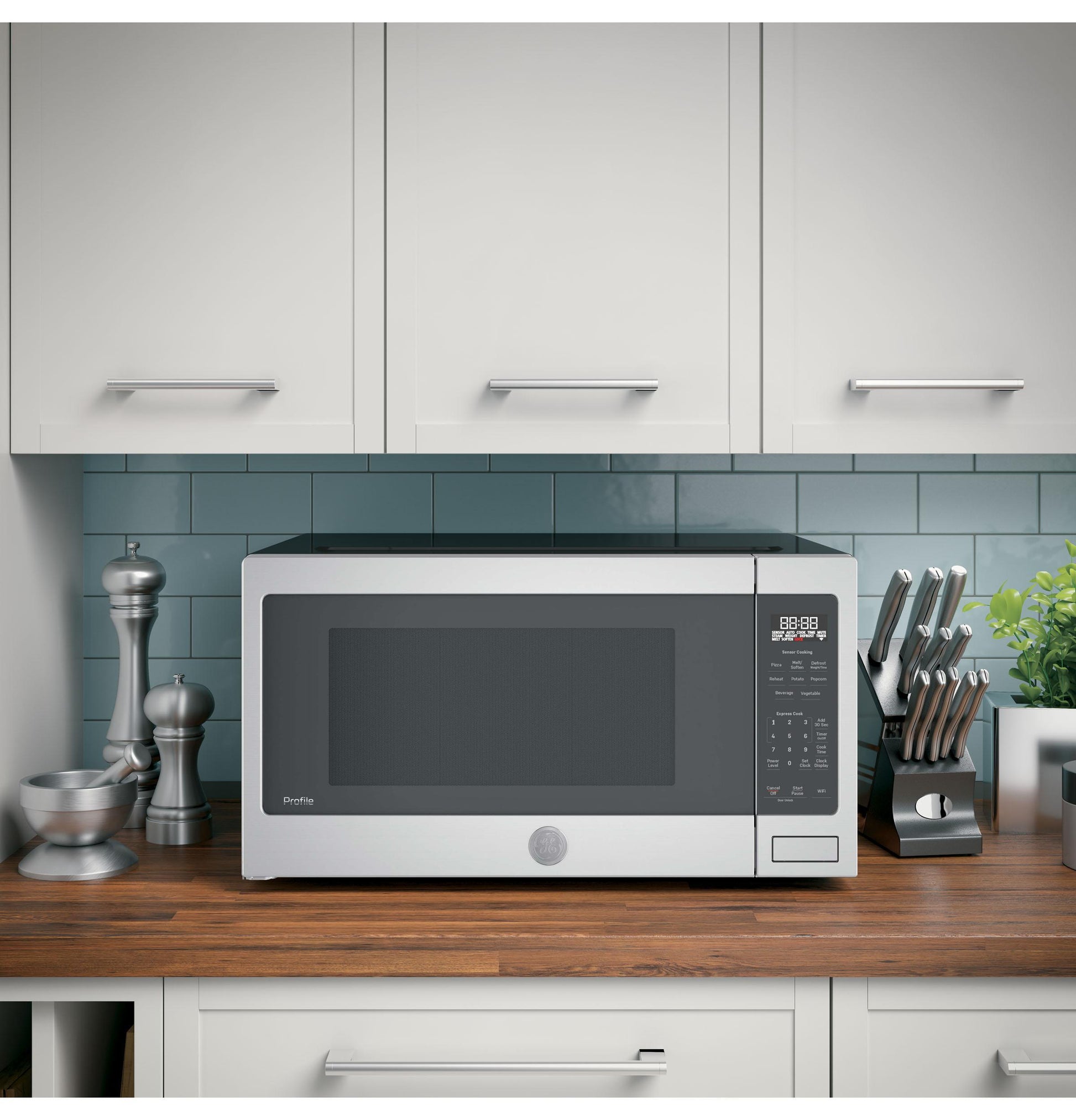 Effortlessly manage your GE Profile microwave's power, cook time, and timers from your smartphone, tablet, or voice control device for ultimate convenience.