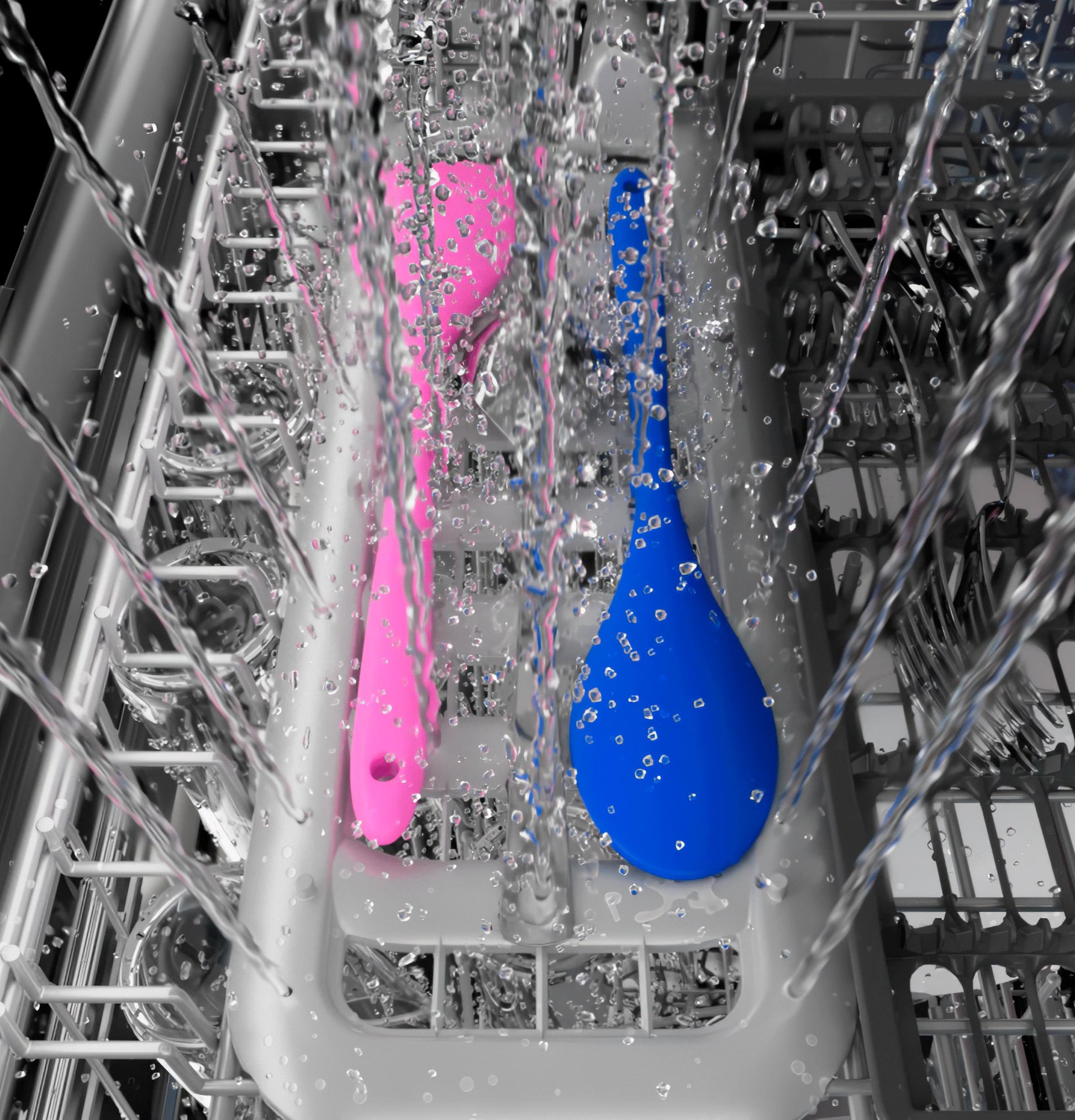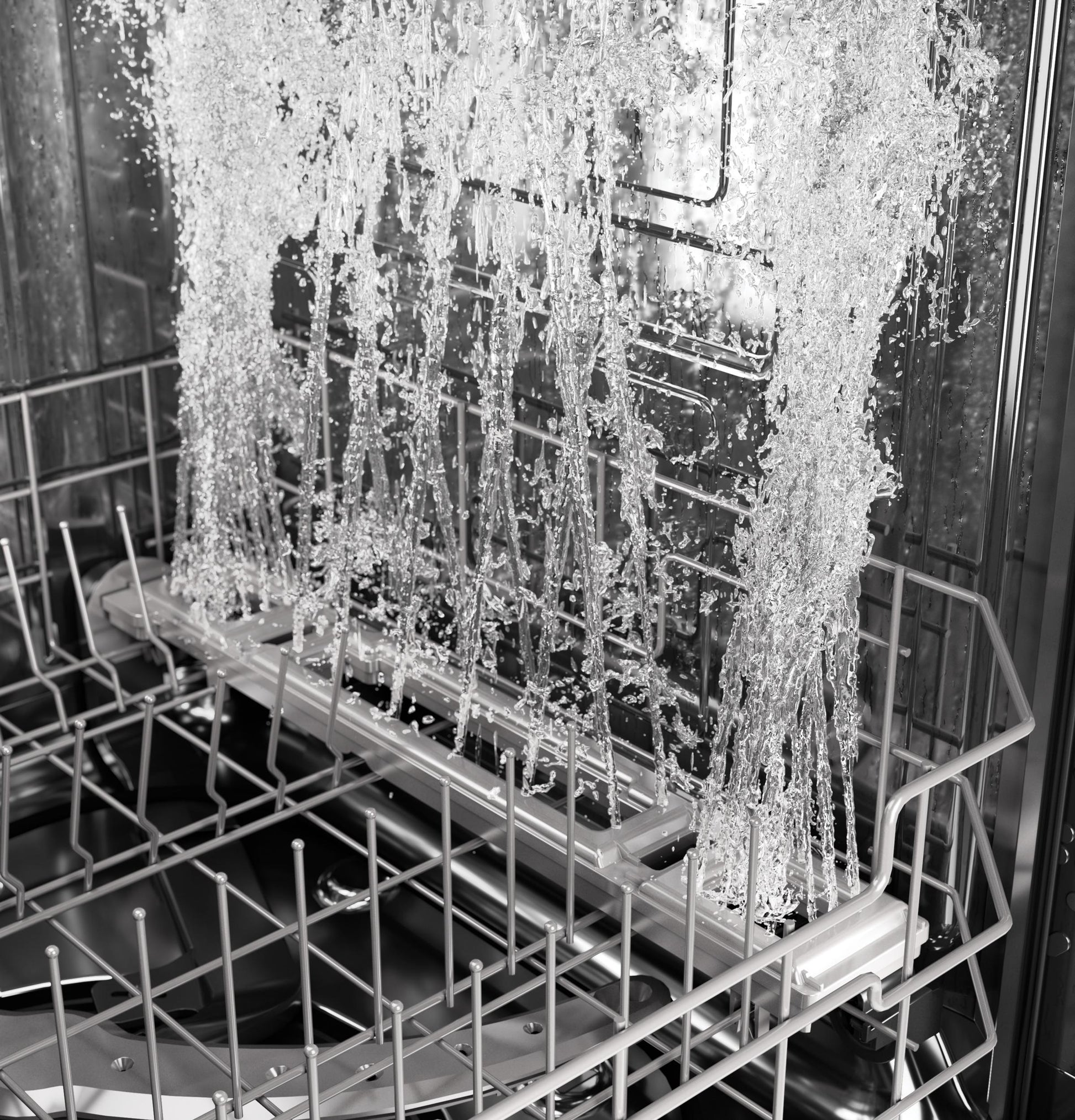 This dishwasher with bottle jets ensures a targeted wash and deep clean for tall items, narrow glasses, jars and more. In the middle rack, each of the 4 bottle wash jets directs water and detergent inside to effectively wash hard-to-reach areas.