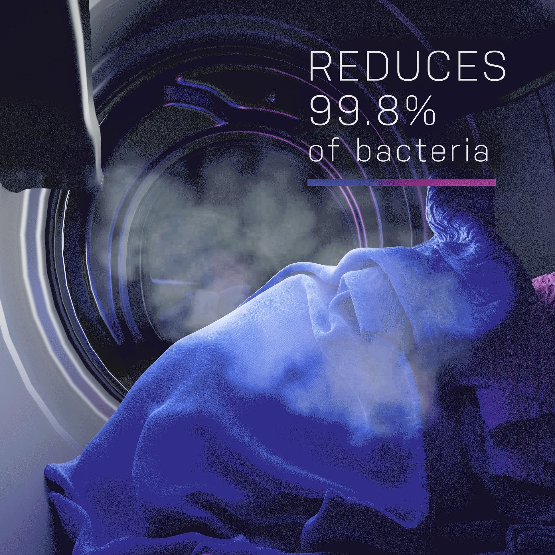 Sterilize clothing with elevated temperatures designed to kill common household germs and bacteria, while using steam technology to reduce wrinkles and odors
