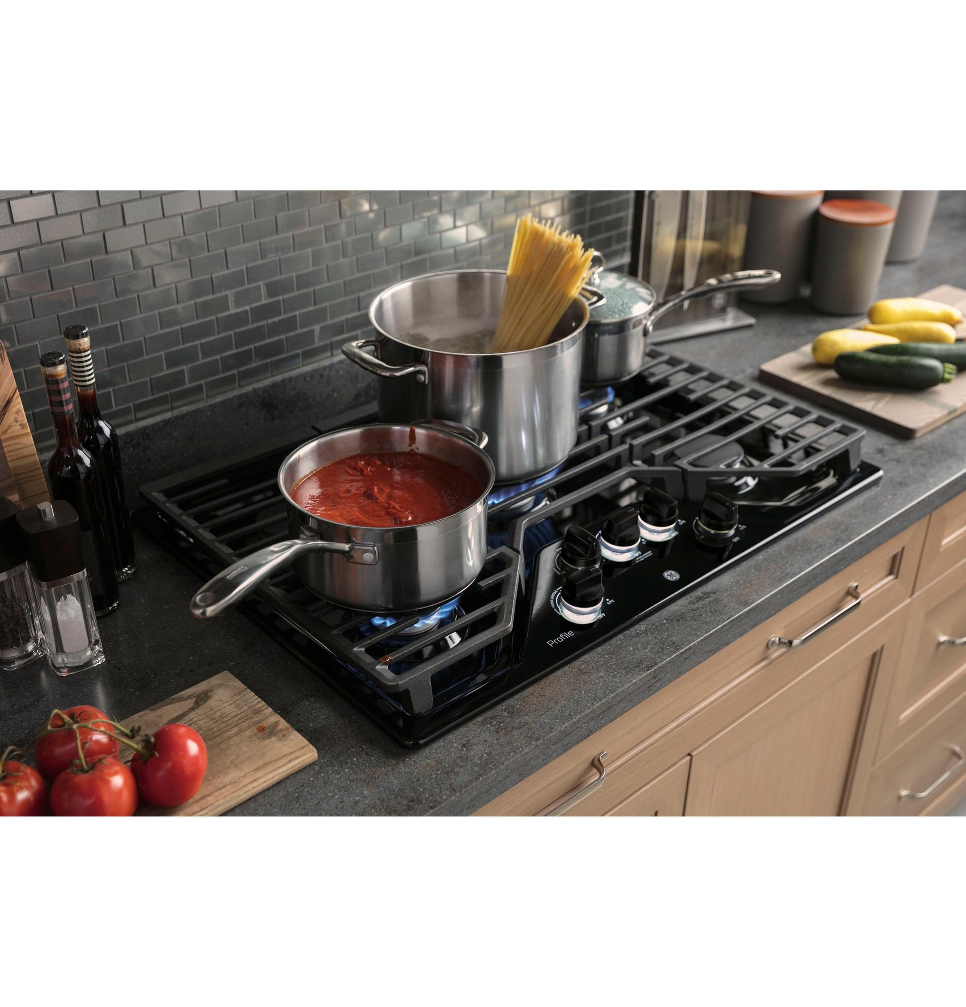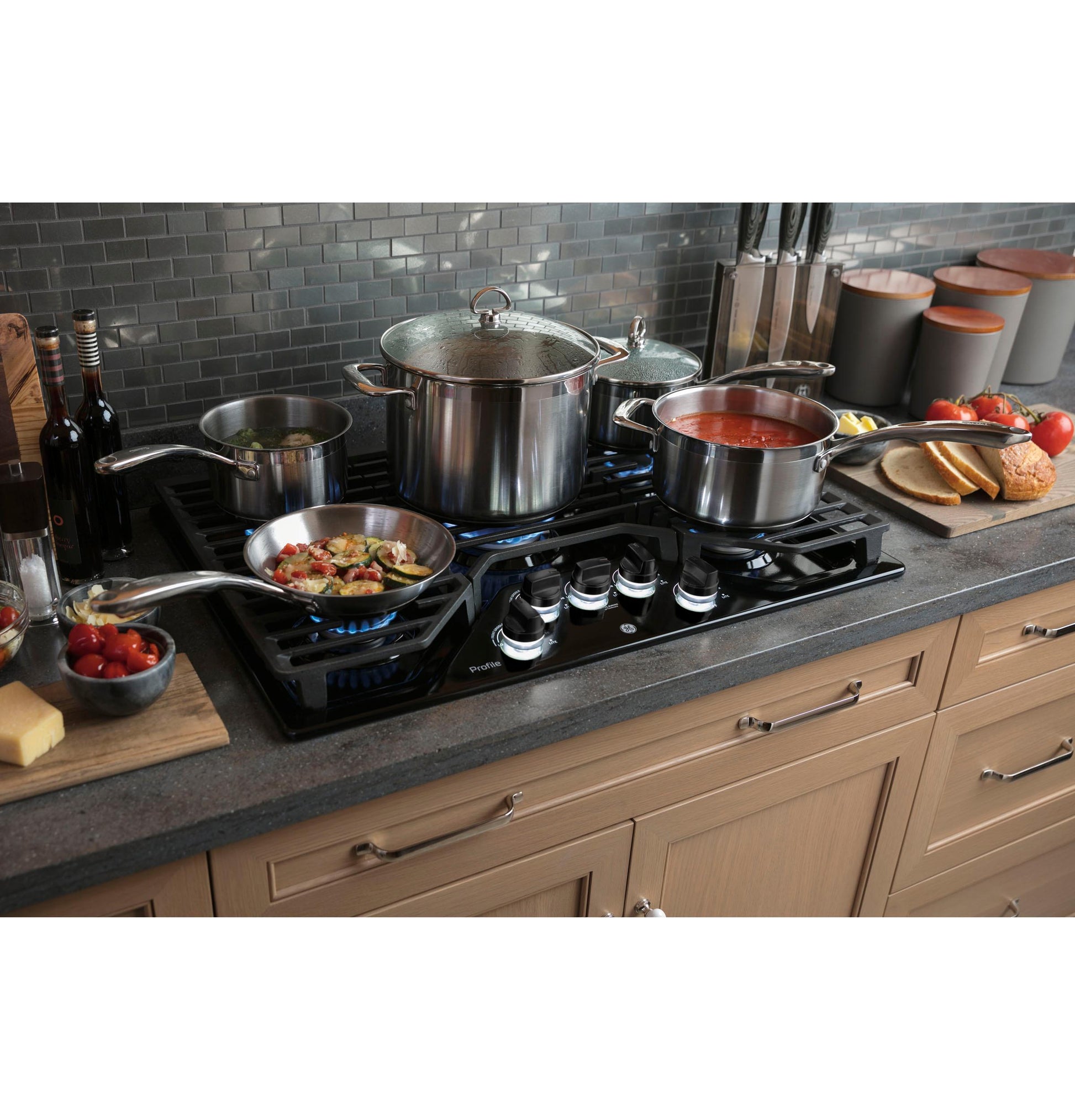 | Cooktop Burner Grate Features | Continuous Grates Dishwasher Safe Edge-to-Edge Grates |