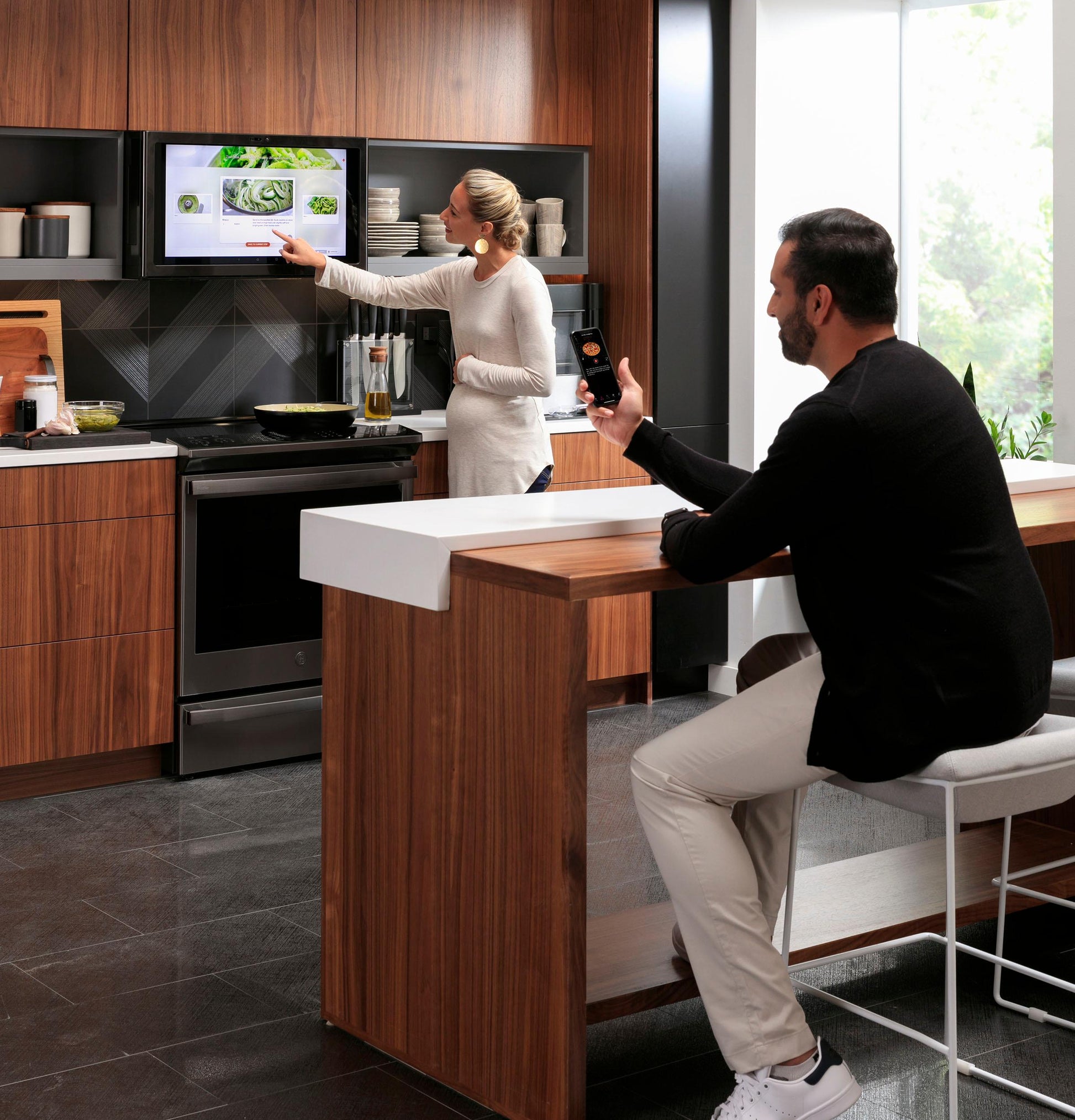 Synchronize your oven and GE Appliances over-the-range microwave so that clocks are always matching and lights automatically come on when a burner is activated with Chef Connect