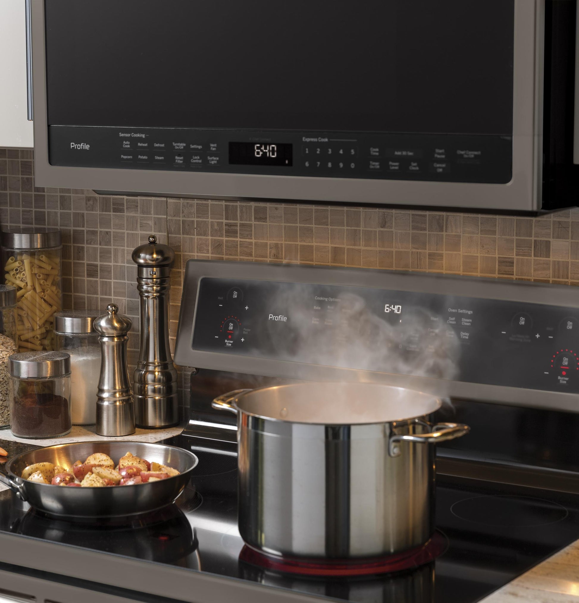 Three options with a single touch. For instant convenience, choose when to automatically sync clocks and the range elements with the microwave's surface light and vent
