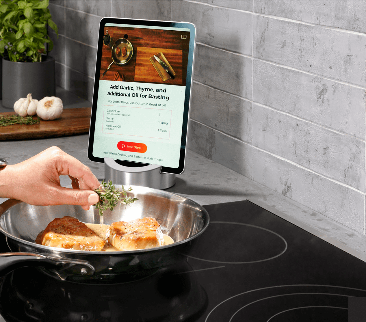 Embedded with a temperature sensor, this smart pan is engineered to talk to your cooktop to deliver restaurant-quality results every time.