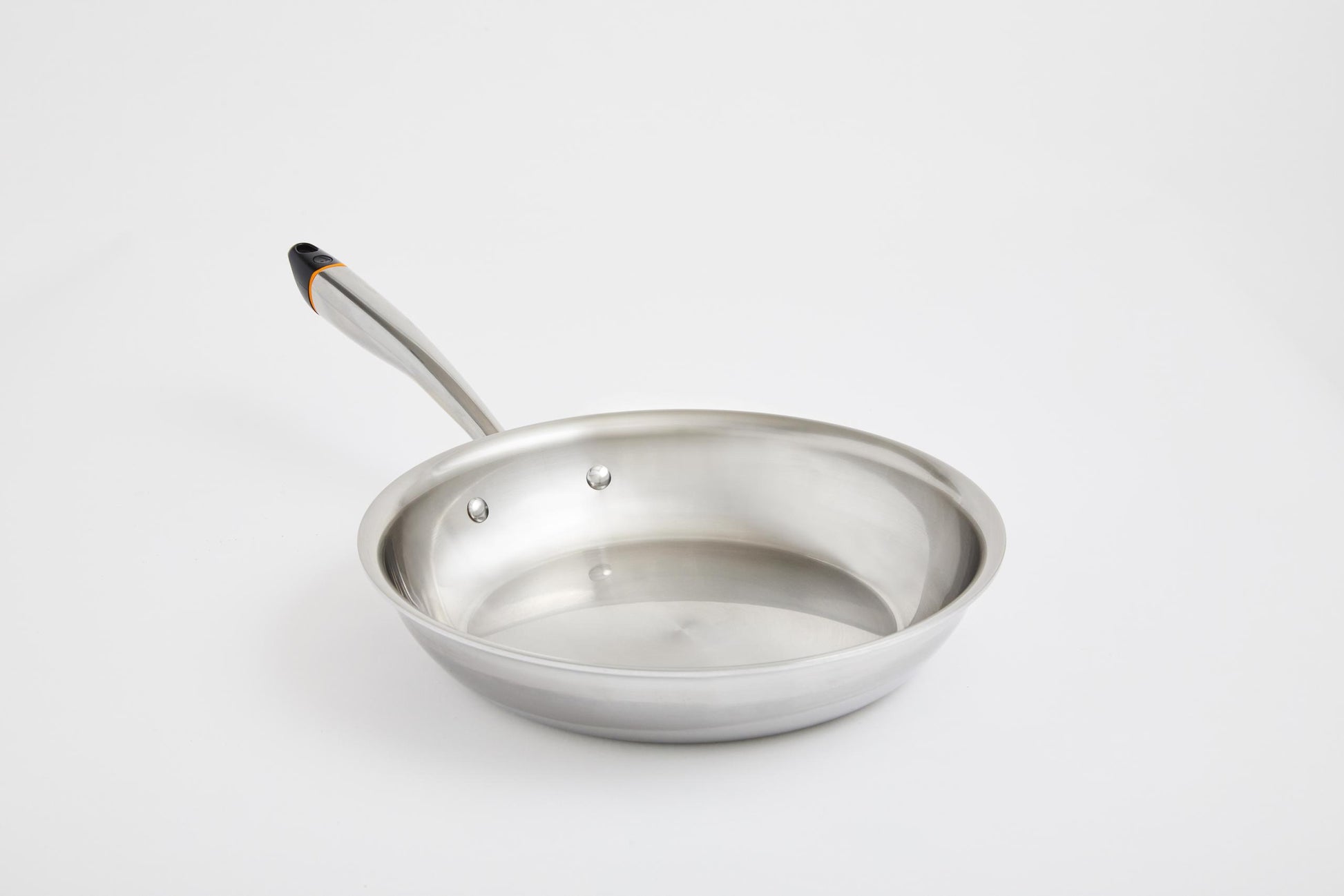 An 11" Sautee Pan with built-in thermocouple lets you maintain precise temperatures on certain Monogram, Caf(eback) and GE Profile ranges and cooktops. Tri-ply stainless steel works on induction.
