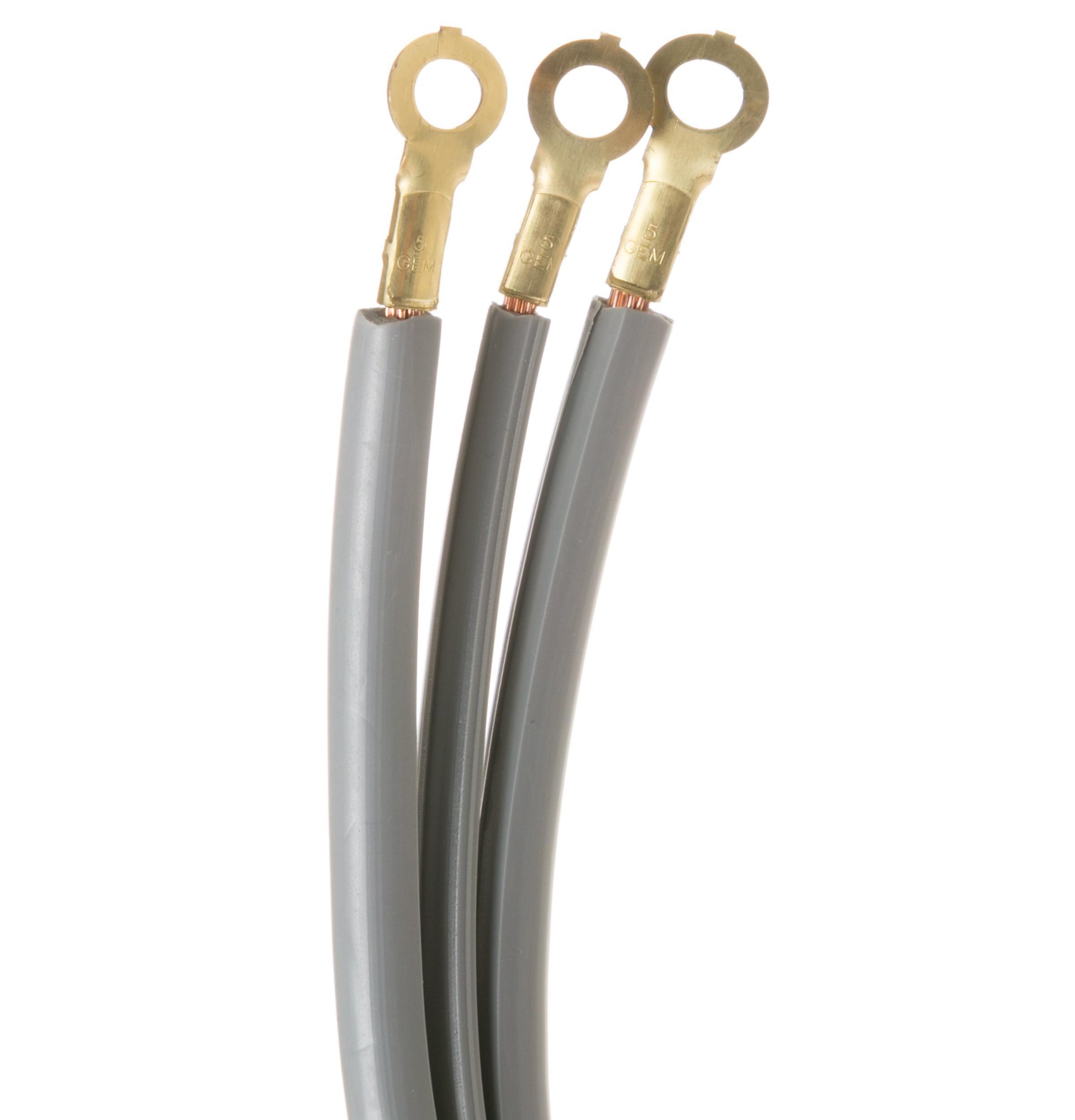 Ring terminals for easy hookup and cord clamp to relieve strain.