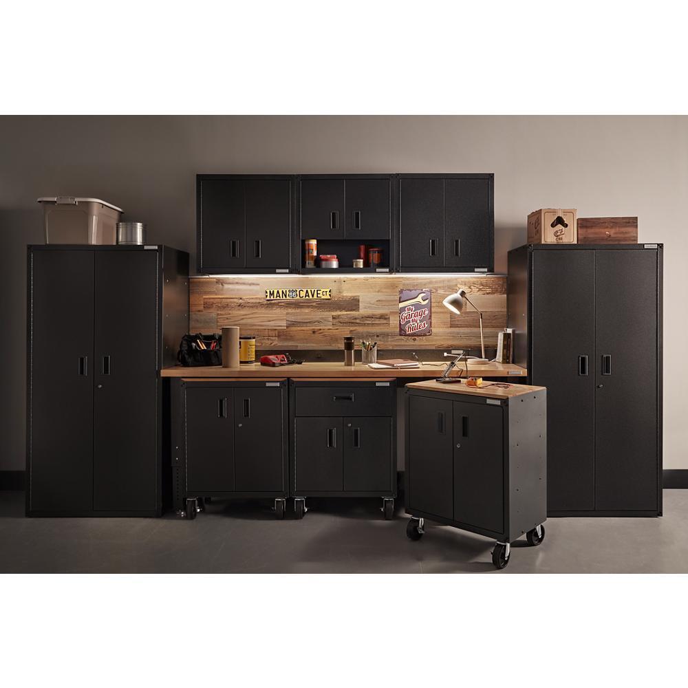 The Ready-to-Assemble 3/4-Door Modular GearBox utilizes a drawer and two doors for maximum storage flexibility. The large cabinet area behind the doors features an adjustable shelf and can accommodate an assortment of tools and garage gear. You can add casters to create a mobile garage workstation. This garage cabinet is ideal for storing smaller automotive and gardening gear or paint supplies, keeping them organized and within reach. Plus, its design makes assembly quick and simple.