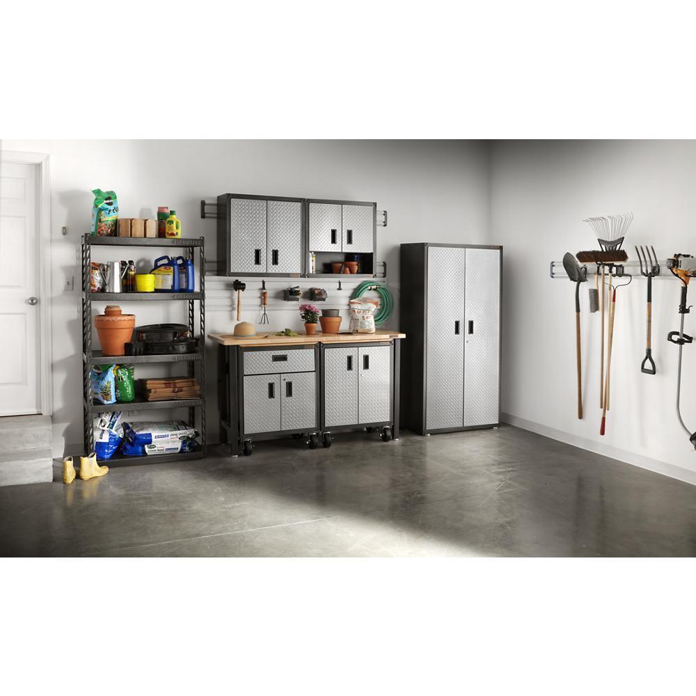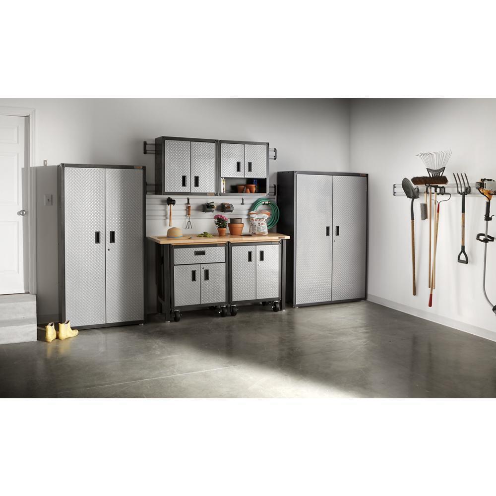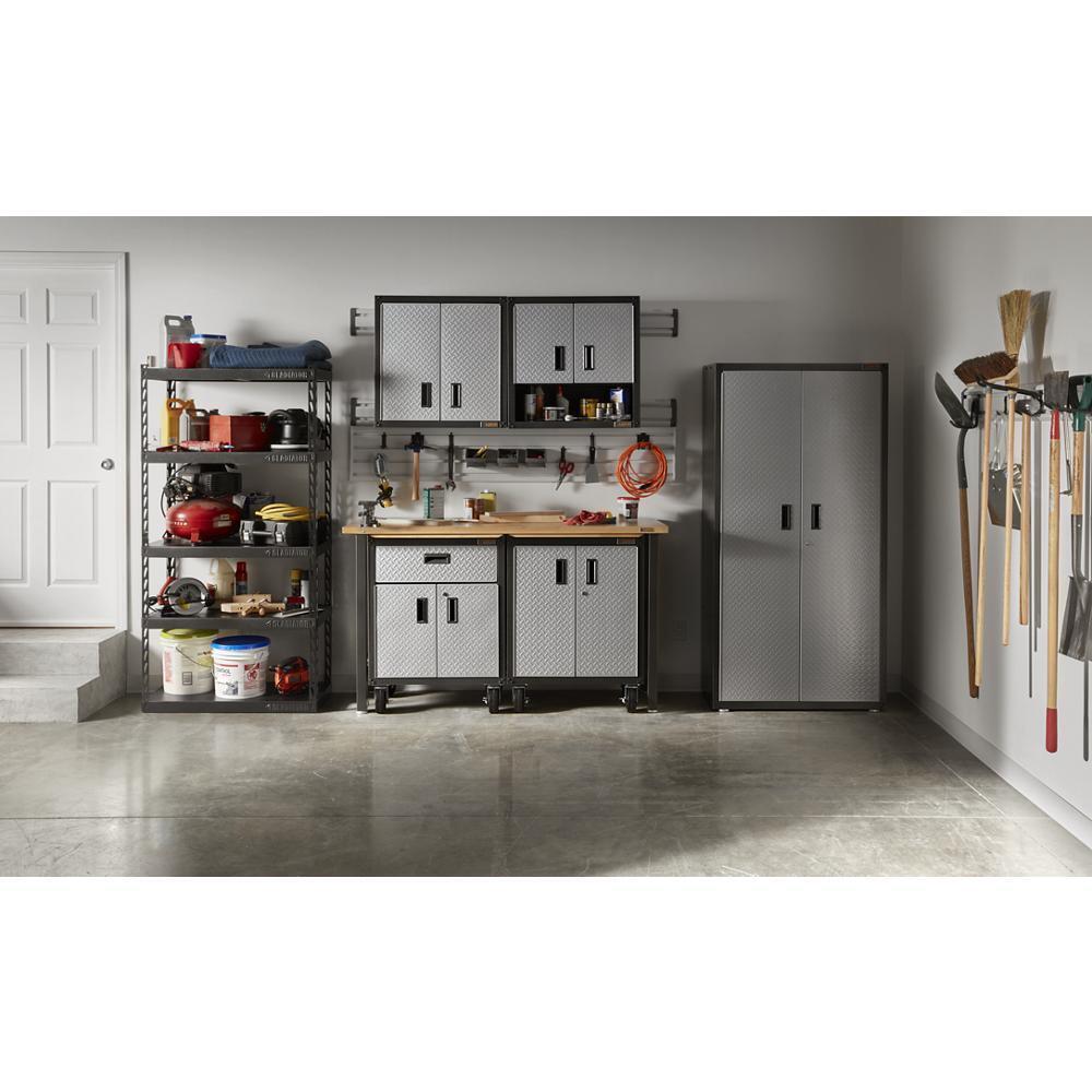 At six-feet tall and one-and-a-half feet deep, the Ready-to-Assemble Large GearBox accommodates supplies of various sizes. Store four levels of gardening tools, paint supplies or automotive gear in this sturdy storage cabinet. The design makes assembly fast and easy, while an optional Wall Bracket Kit lets you get the cabinet off the floor using Gladiator® Wall Systems. Not compatible with caster kit.