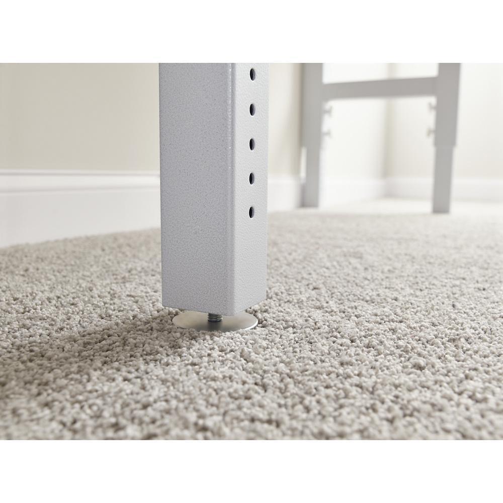 Built to perform wherever you need it, this 6' wide workbench features a solid hardwood top with a 3,000-lb max distributed weight capacity. The heavy duty, welded steel legs feature a hammered white finish and adjust easily to provide the proper working height for any project.