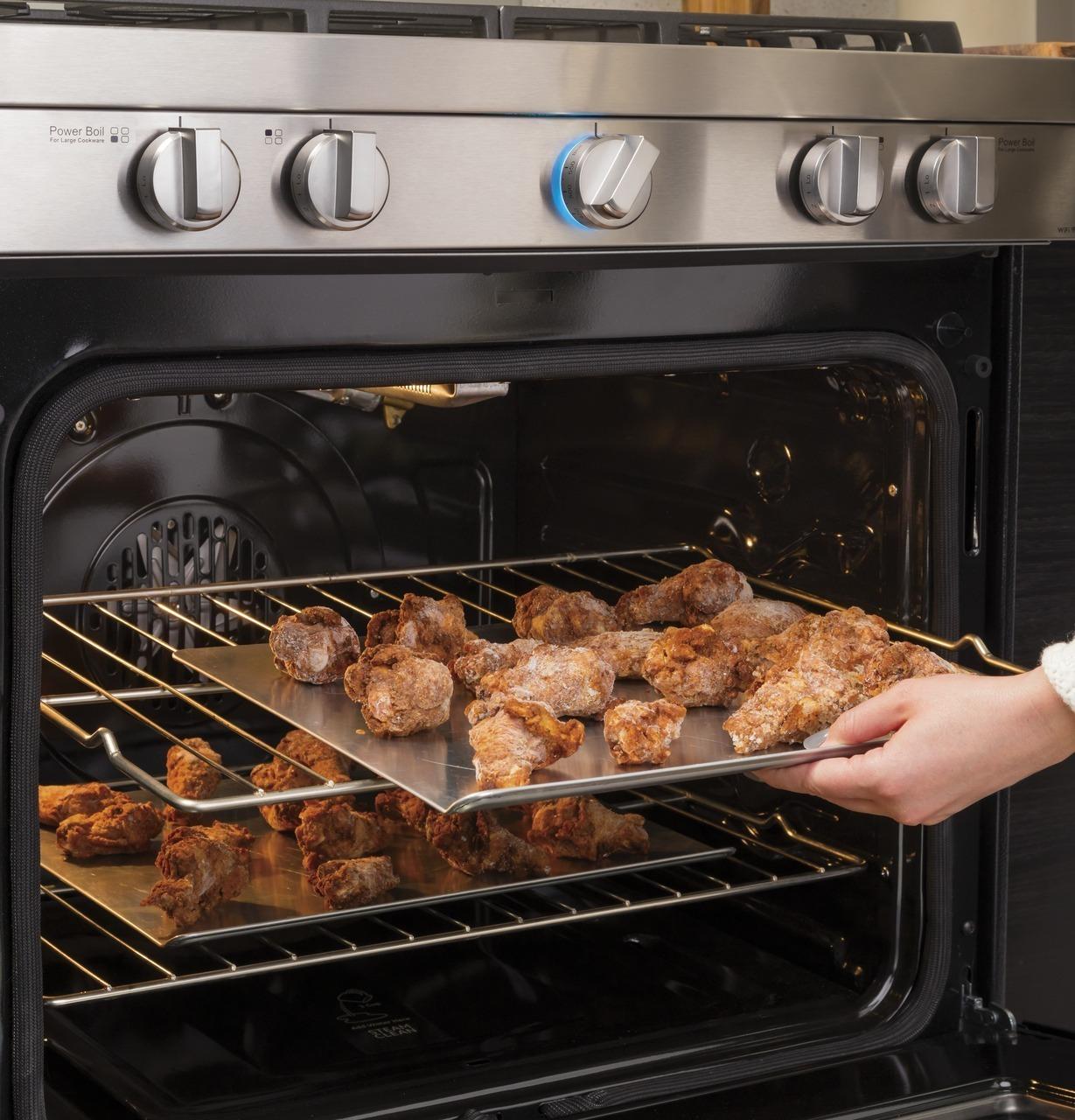 Smart design elevates your baking. Oven fan continuously circulates heated air for more even baking and roasting results