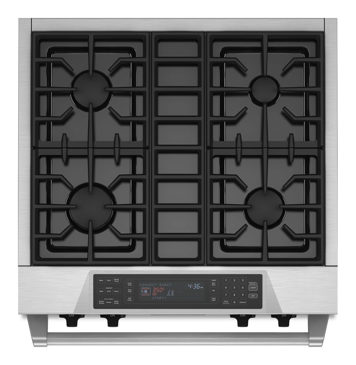 This dual fuel range has commercial styling available in a variety of bold colors. The stunning look is complemented by features like our Ultra Power™ Dual-Flame Burner that can reach a maximum output of 20K BTU. The Even-Heat™ True Convection Oven allows passionate cooks to reach their gourmet potential.