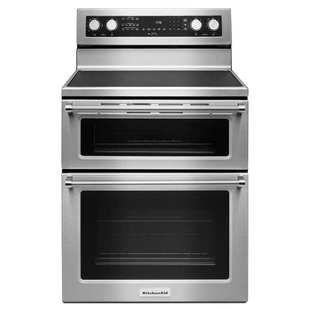 This beautiful electric double oven range produces flawless cooking results with Even-Heat™ True Convection. The unique bow-tie design and convection fan ensure the inside of the entire oven is heated to, and stays at, the perfect temperature. The ovens are a combined 6.7 cu ft., providing an extra-large capacity and separate temperature environments. The cooktop features five heating surfaces, including a dedicated warming zone, allowing you to do more on your range.