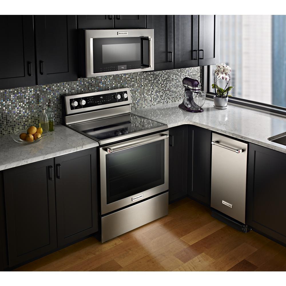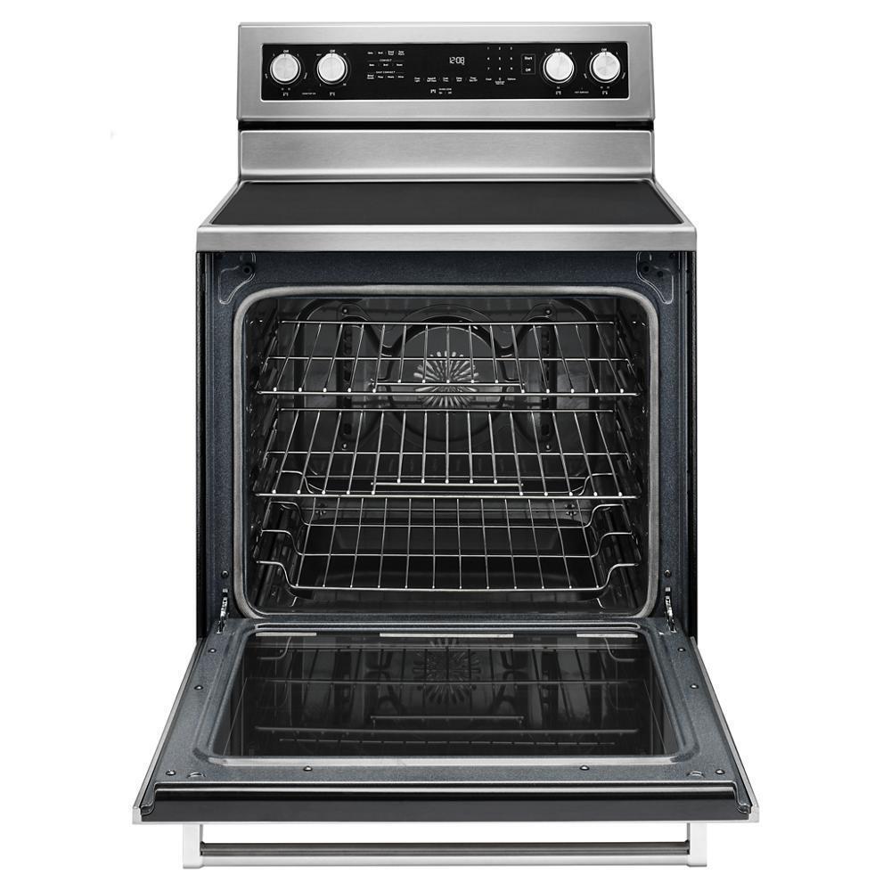 This versatile electric freestanding range produces flawless cooking results with Even-Heat™ True Convection. The unique bow-tie design and convection fan ensure the inside of the entire oven is heated to, and stays at, the perfect temperature. The cooktop features five heating surfaces, including a dedicated warming zone, allowing you to do more on your range.