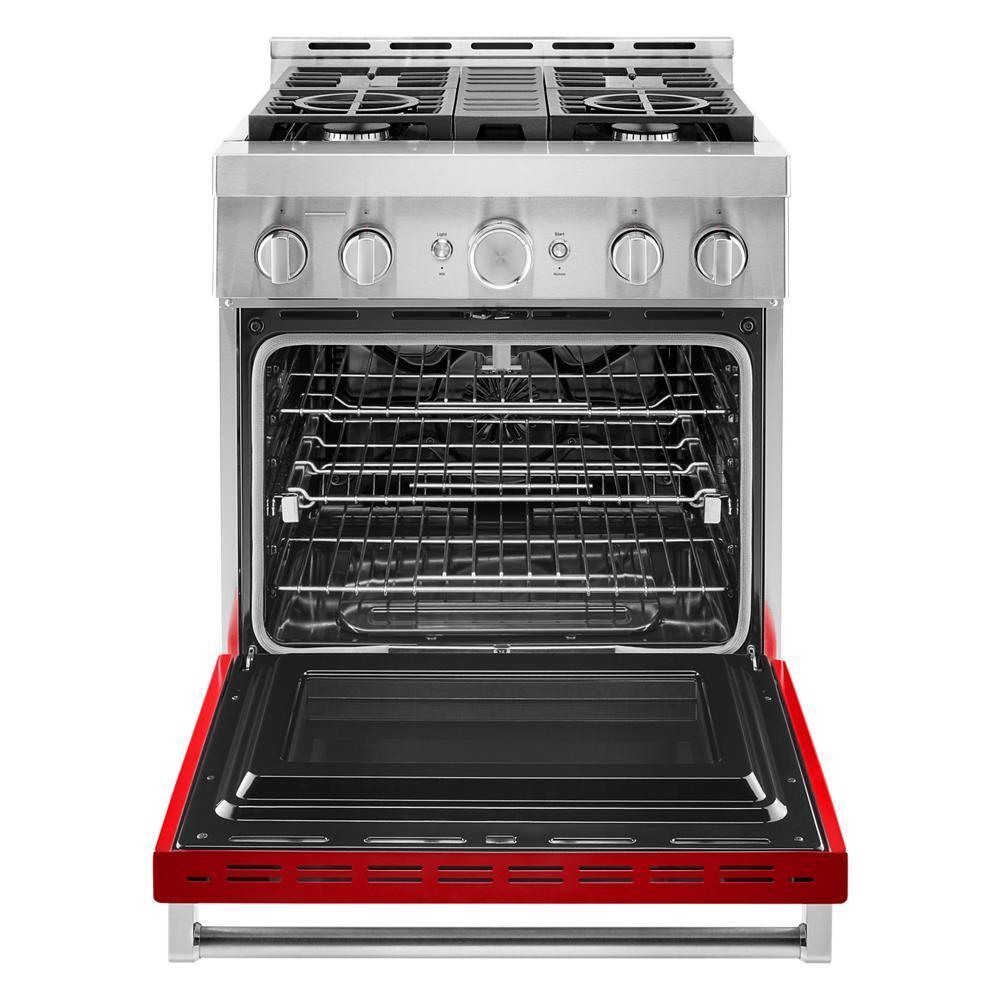 Empower your creativity with a 30-inch KitchenAid® Commercial Style Range with 4 burners. This gas range features two versatile 20,000 BTU Ultra Power™ Dual-Flame Burners with the power and precision needed to successfully sear, simmer, stir-fry and saut(eback). Even-Heat™ True Convection helps you achieve more consistent baking and roasting.