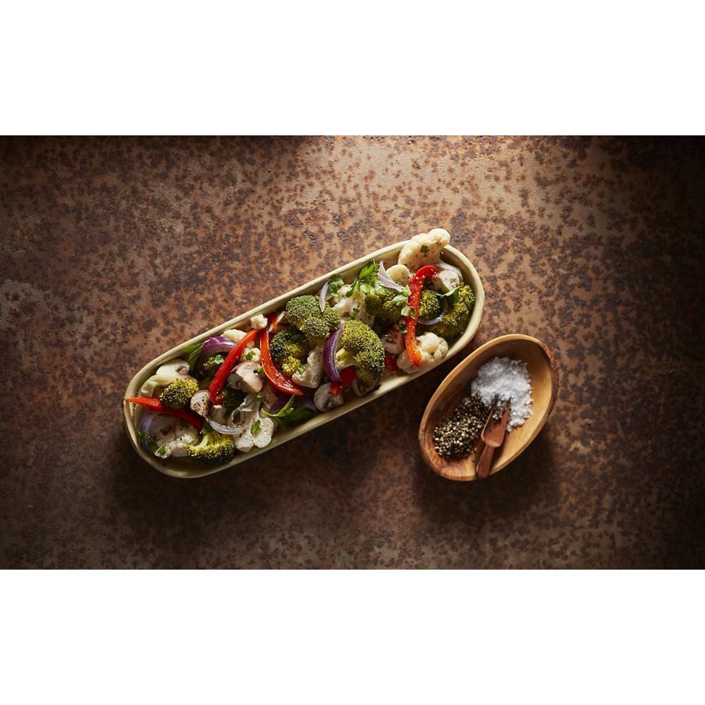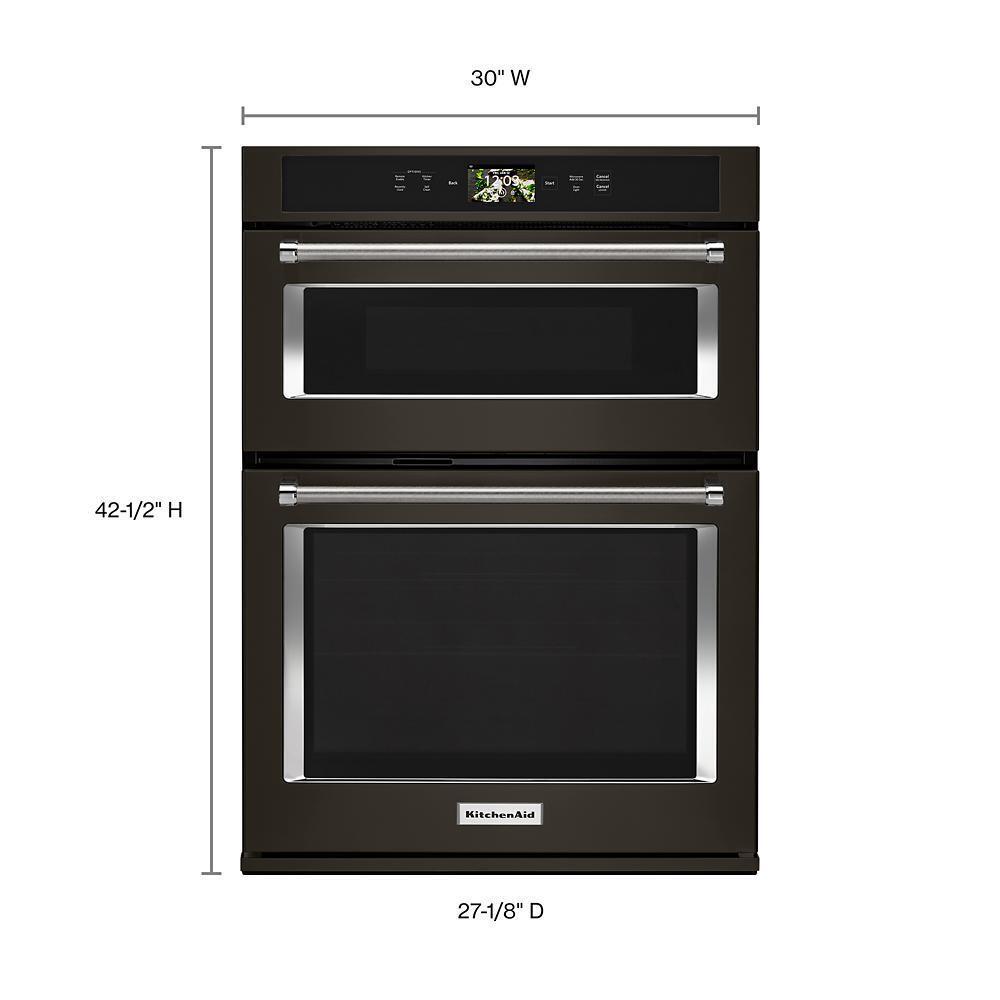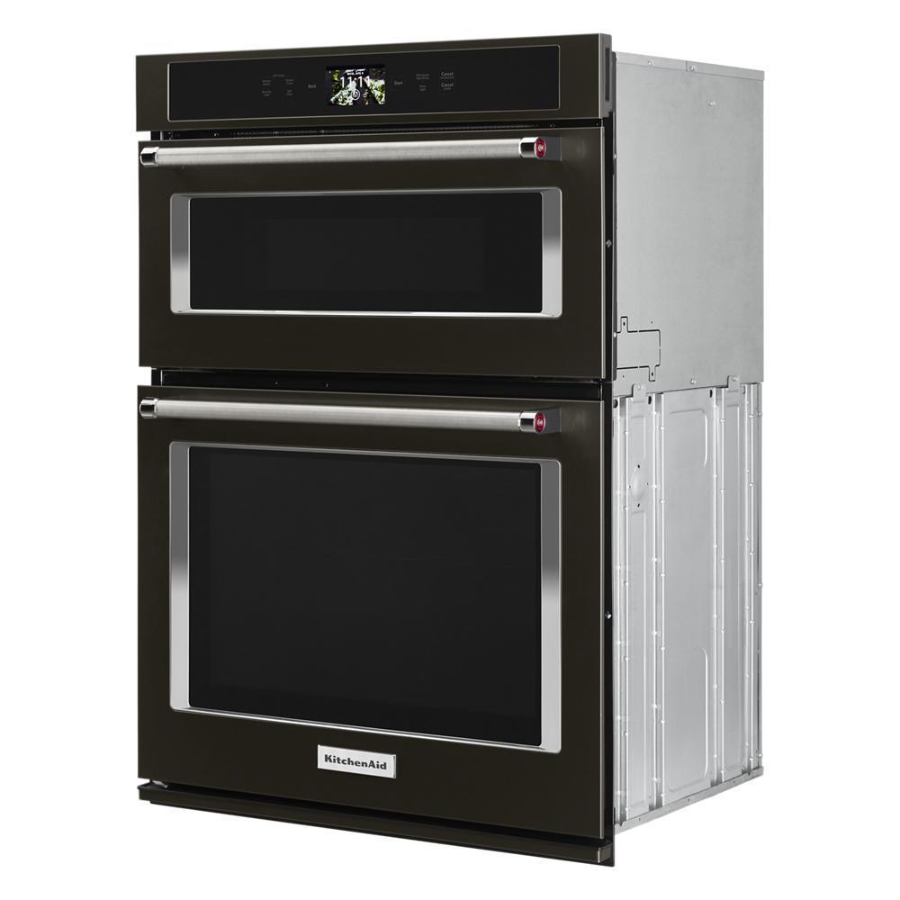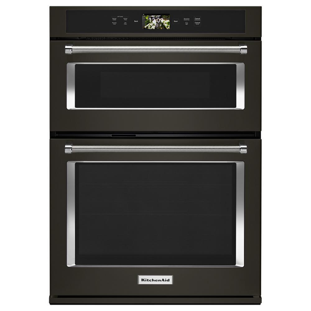 Open up new culinary possibilities. KitchenAid introduces the first combination wall oven that comes with interchangeable attachments in the tradition of the iconic KitchenAid® Stand Mixer to enable grilling, stone cooking and steaming. It supports a full complement of smart capabilities as well as baking, broiling and Even-Heat™ True Convection, and maintains its own beauty with a fingerprint-resistant PrintShield™ finish.
