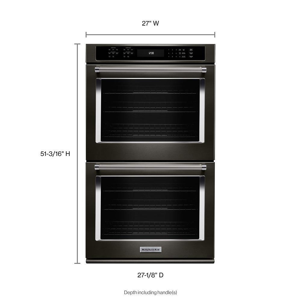 This 27" Double Wall Oven with Even-Heat™ True Convection provides consistent heating and even cooking. A unique bow-tie shaped design and convection fan helps ensure there are no burnt edges or undercooked centers. The Temperature Probe delivers accurate measurement of internal temperatures of meats, poultry, and casseroles without opening the oven. Bold design details are the perfect balance of elegance and functionality.