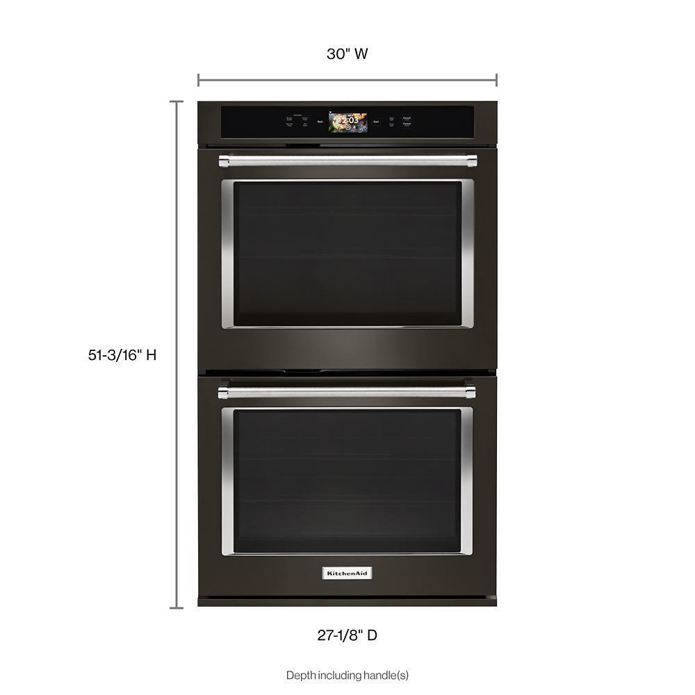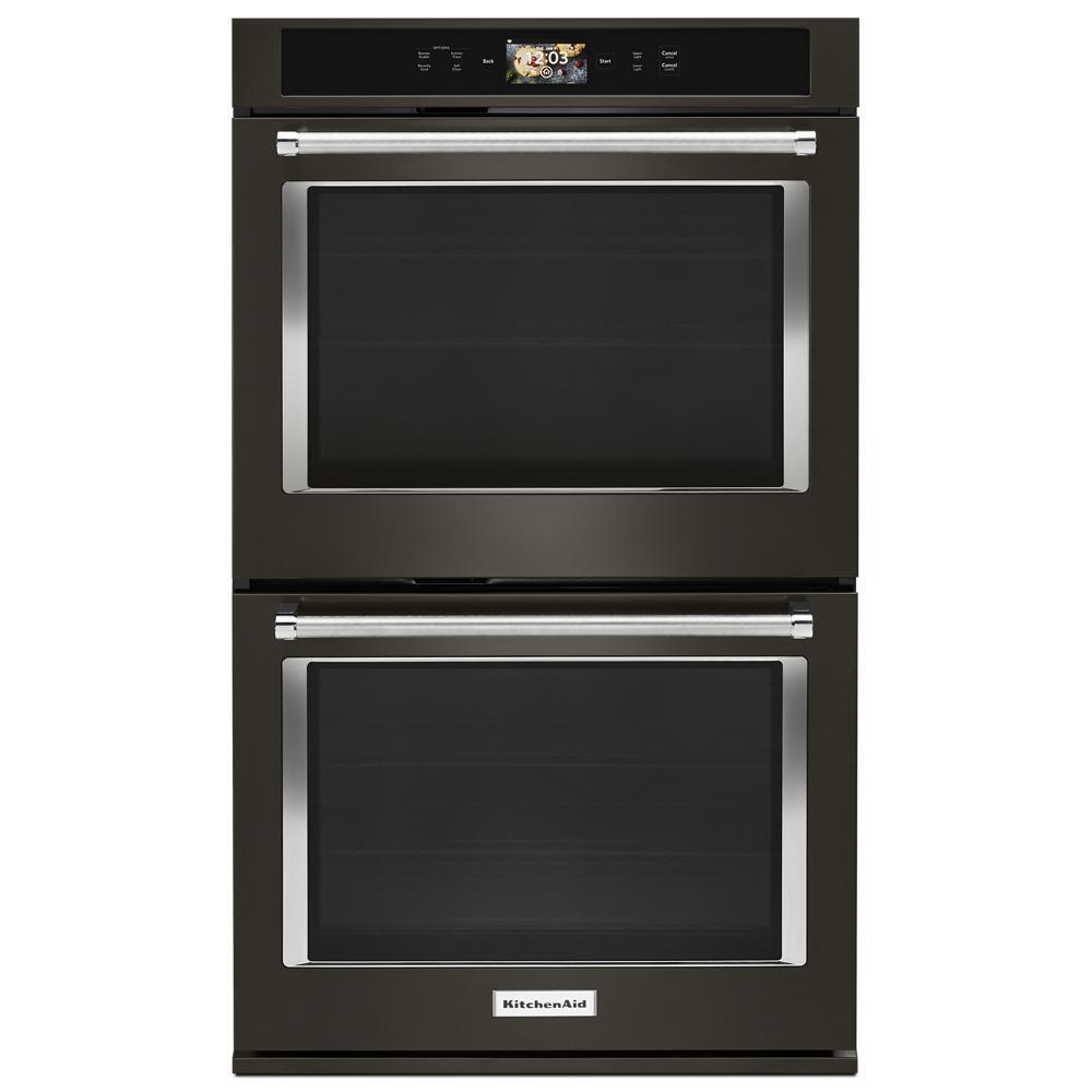 Open up new culinary possibilities. KitchenAid introduces the first double wall oven that comes with interchangeable attachments in the tradition of the iconic KitchenAid® Stand Mixer to enable grilling, stone cooking and steaming. It supports a full complement of smart capabilities as well as baking, broiling and Even-Heat™ True Convection, and maintains its own beauty with a fingerprint-resistant PrintShield™ finish.