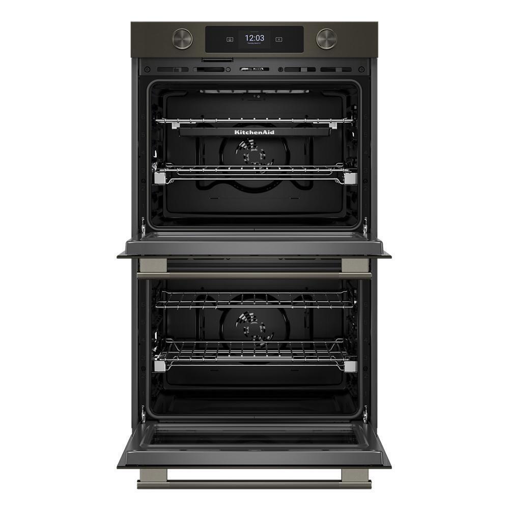 Explore new recipes with built-in tips on this KitchenAid smart wall oven, featuring our Most Precise Even-Heat™ True Convection and Assisted Cooking Modes. LED Touchscreen display and backlit knobs allow for tactile display navigation. The backlit knobs also provide a visual cue throughout the cooking process, illuminating when the oven is preheating and pulsing when cooking is finished. Designed to be personalized, these wall ovens are available in a curated palette of exterior finishes and can be customized with mixed metal hardware.