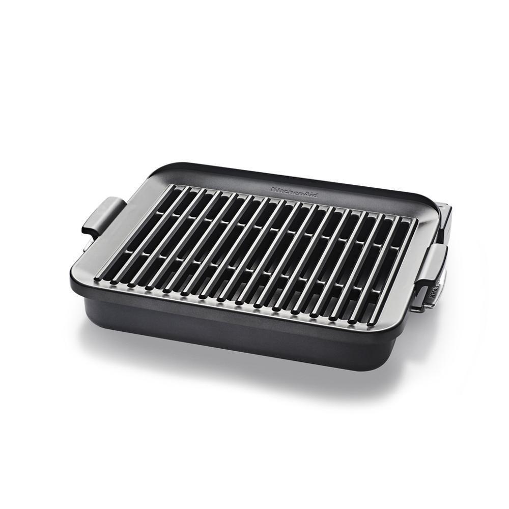 Open up new culinary possibilities. KitchenAid introduces the first single wall oven that comes with interchangeable attachments in the tradition of the iconic KitchenAid® Stand Mixer to enable grilling, stone cooking and steaming. It supports a full complement of smart capabilities as well as baking, broiling and Even-Heat™ True Convection, and maintains its own beauty with a fingerprint-resistant PrintShield™ finish.