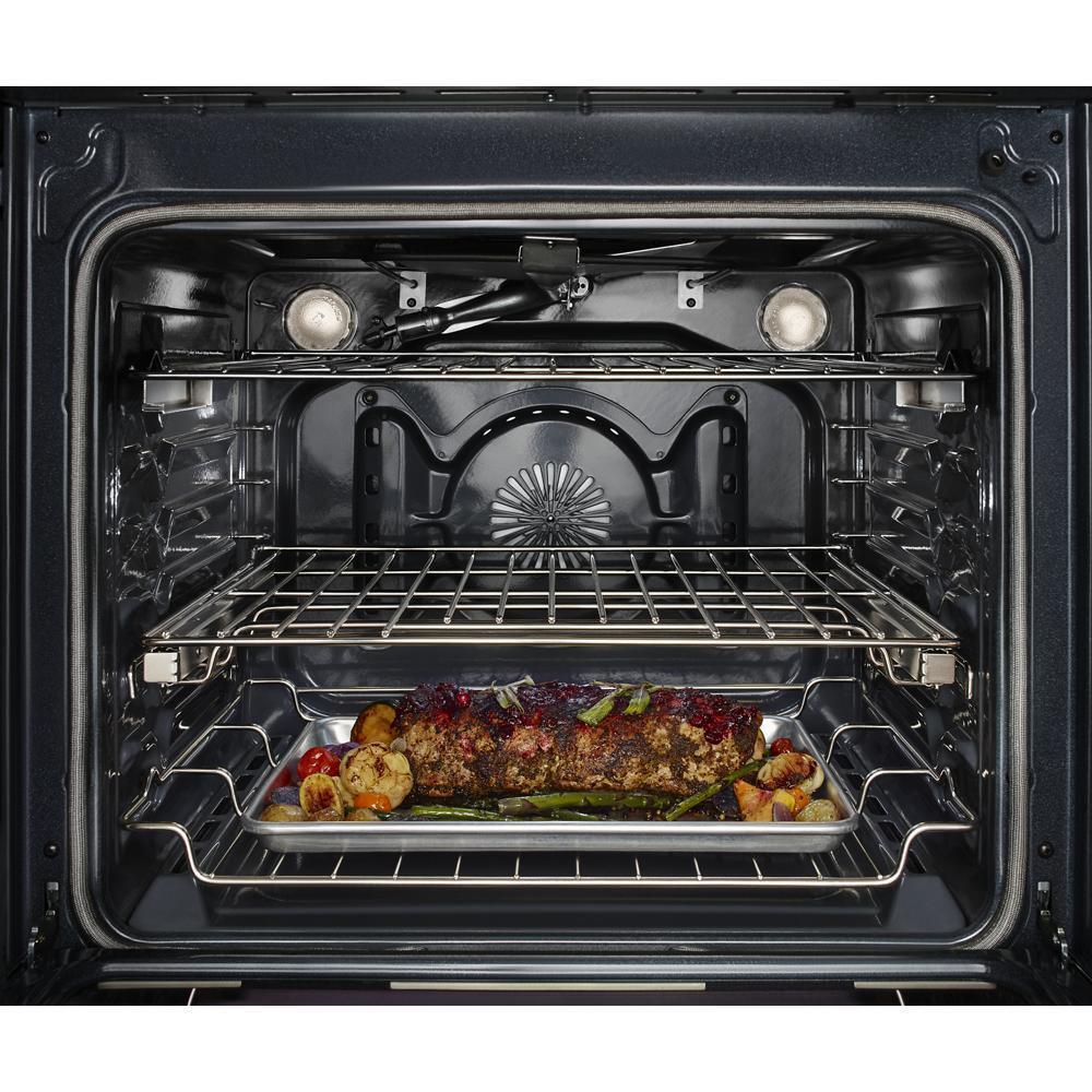 This versatile dual fuel range provides a Baking Drawer that adds more options to the oven. The separate compartment allows you to bake at a different temperature. This range also features flawless cooking results from Even-Heat™ True Convection. The unique bow-tie design and convection fan ensure the entire oven is heated to, and stays at, the perfect temperature.